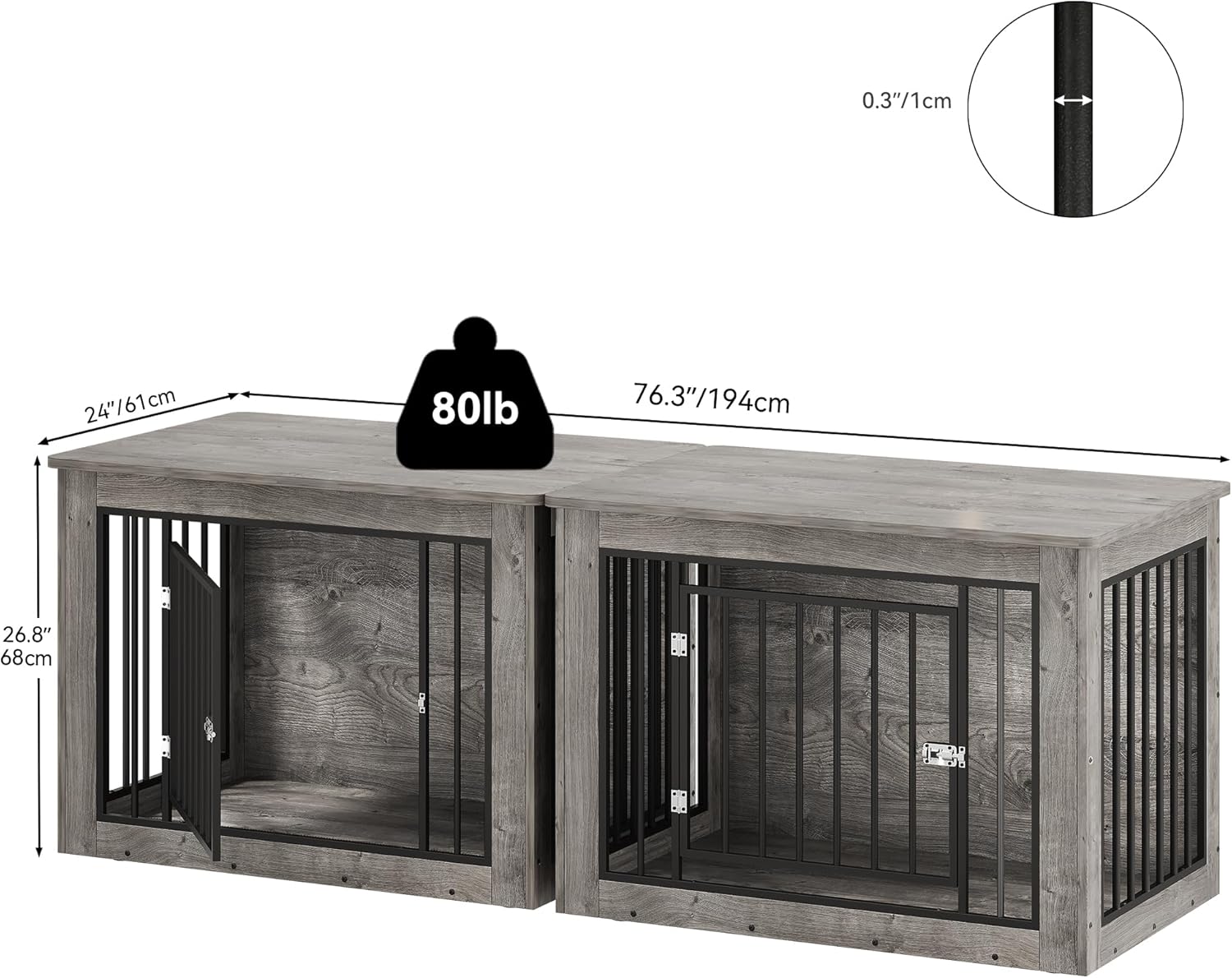 - 2-in-1 Design: The large dog kennel serves as a functional side table that also doubles as a cozy resting space for your pet and stylish furniture piece; Its innovative design saves space and adds a unique element to your home decor, blending utility and style