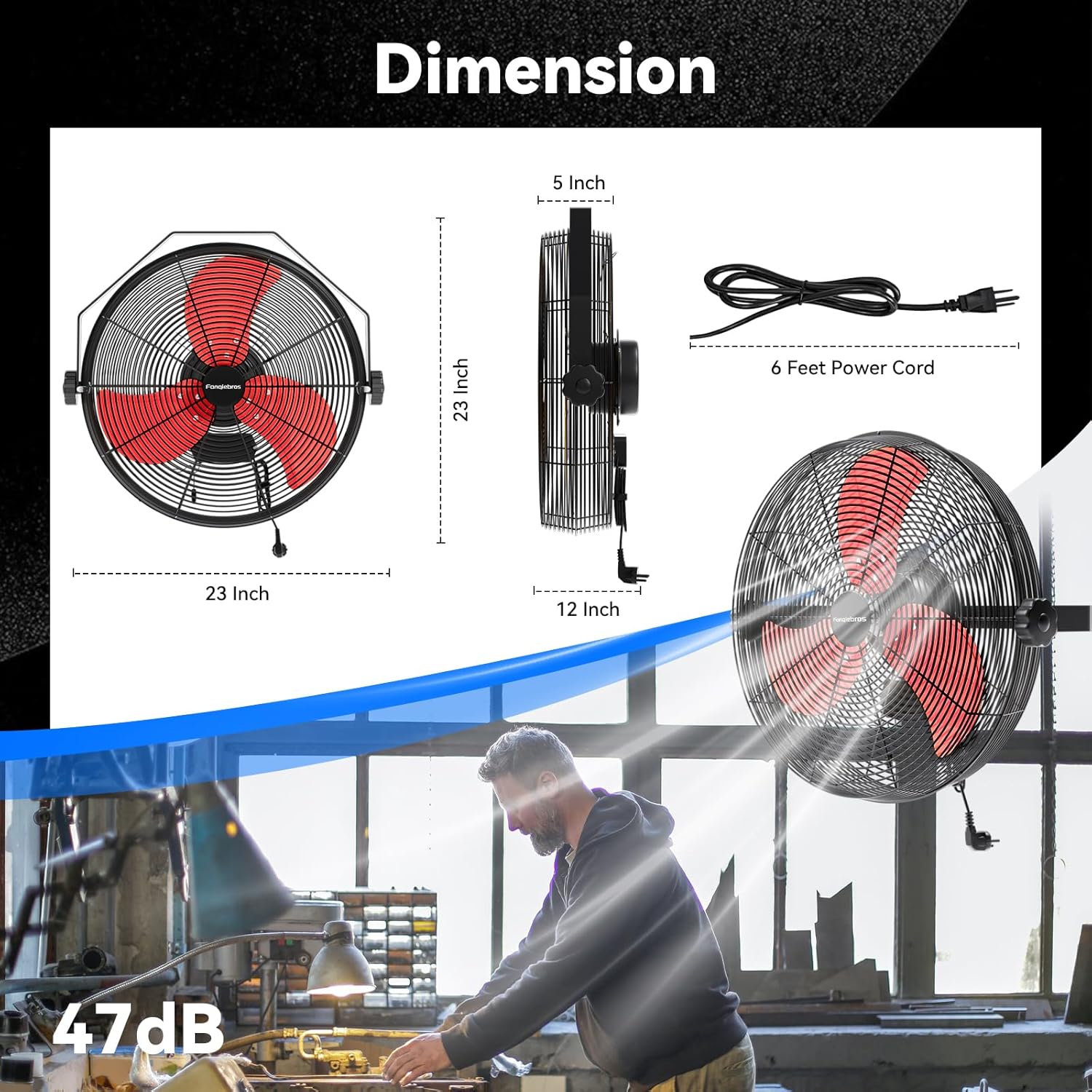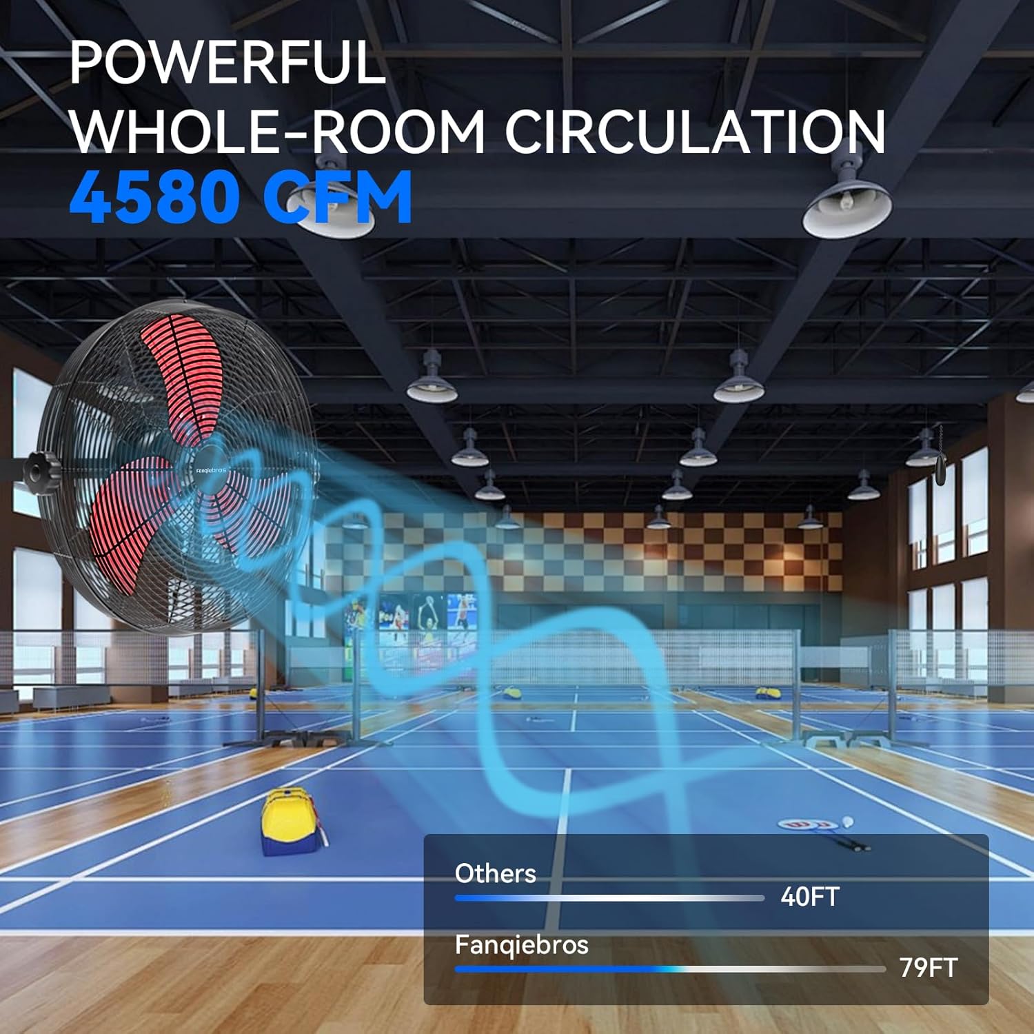 - 𝐋𝐨𝐰-𝐍𝐨𝐢𝐬𝐞 𝐃𝐞𝐬𝐢𝐠𝐧 - The heavy-duty wall fan operates at a high speed of 4580 CFM with a noise level of only 60dB, which is lower than the industry standard, creating a quieter gathering or working environment