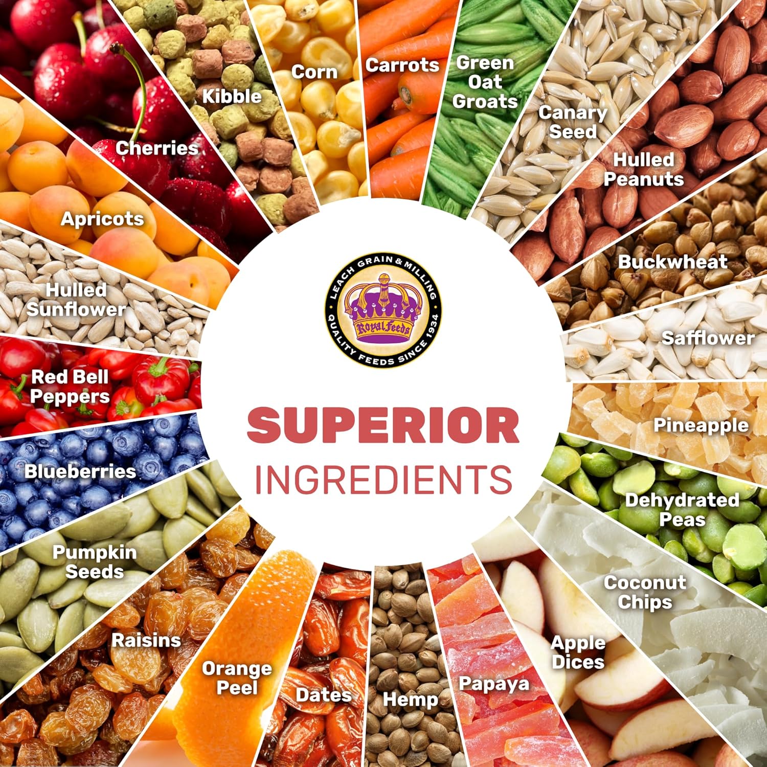 - ππππ ππππ ππππ πππππππππππβ This diverse mix of seeds, grains, and dried fruits, including papaya, blueberries, apples, and coconut chips, provides exciting textures and flavors to keep birds engaged. The natural ingredients stimulate their senses, encourage foraging behavior, and prevent mealtime boredom, ensuring they enjoy every bite while receiving a nutritionally complete diet.