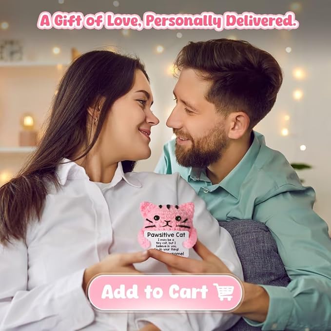 Positive Cat Crochet for Friend Mom Grandma Dad Grandpa Daughter Son Aunt,Pink Cat Gifts for Cat Lover,Emotional Sister Brother Support Small Birthday Gifts Pink