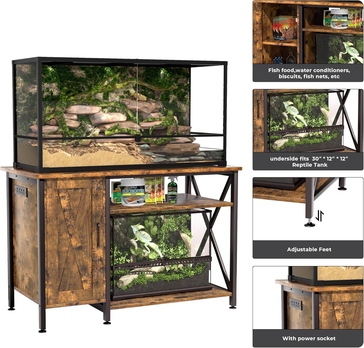 - High-Quality Materials for Long-Lasting Durability - Made with premium MDF panels and a sturdy iron frame, this terrarium stand is both stylish and durable. Whether for large reptiles or multi-layer setups, it offers reliable support for your 120-gallon reptile tank and additional 30" x 20" habitat space, ensuring lasting performance.