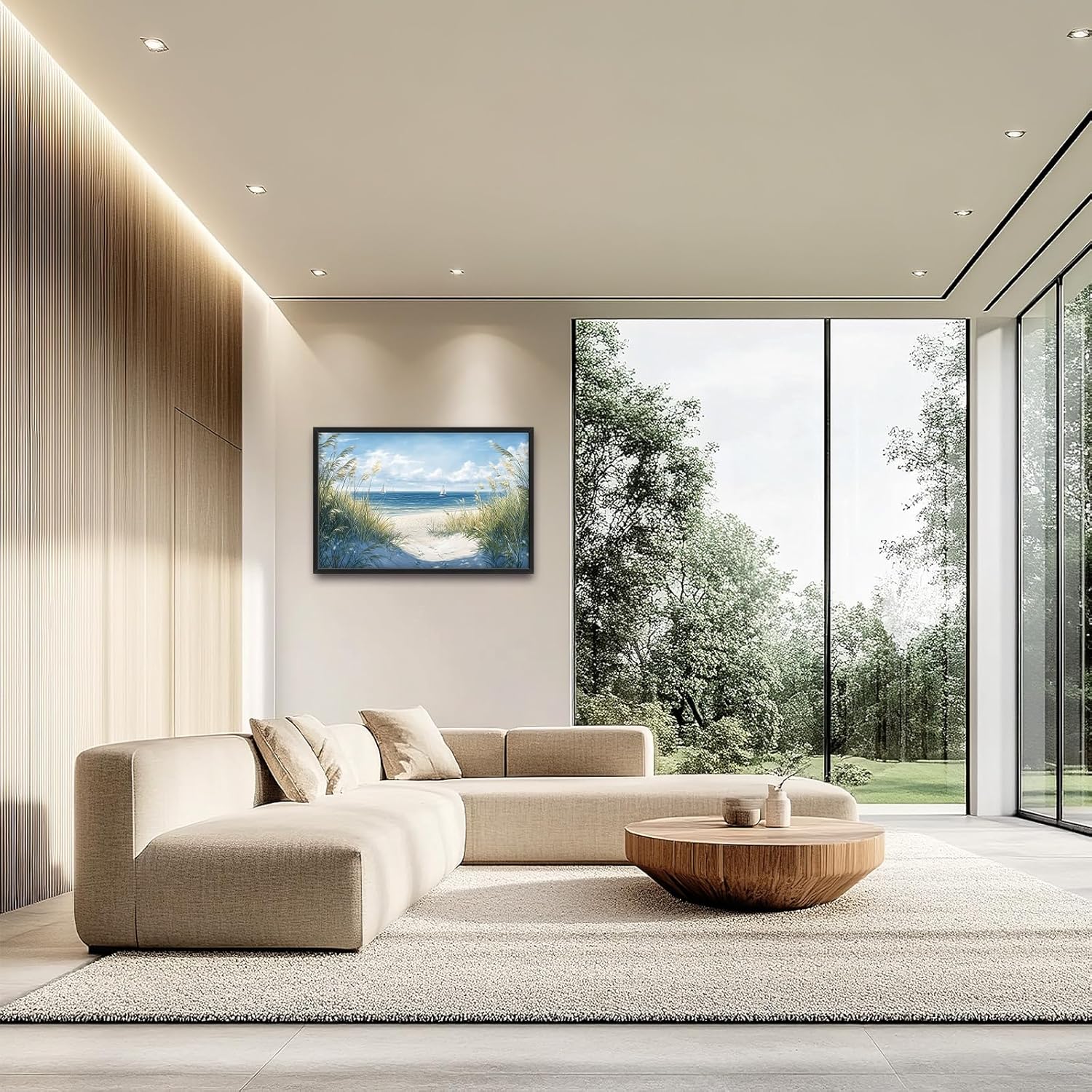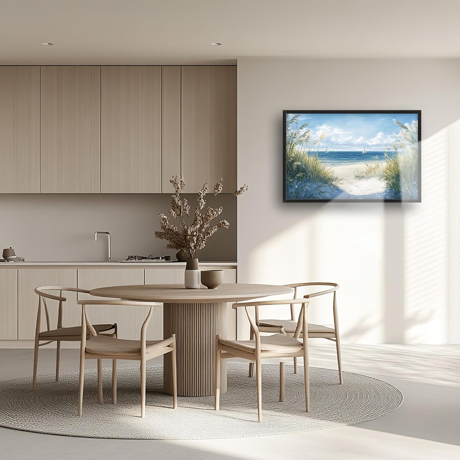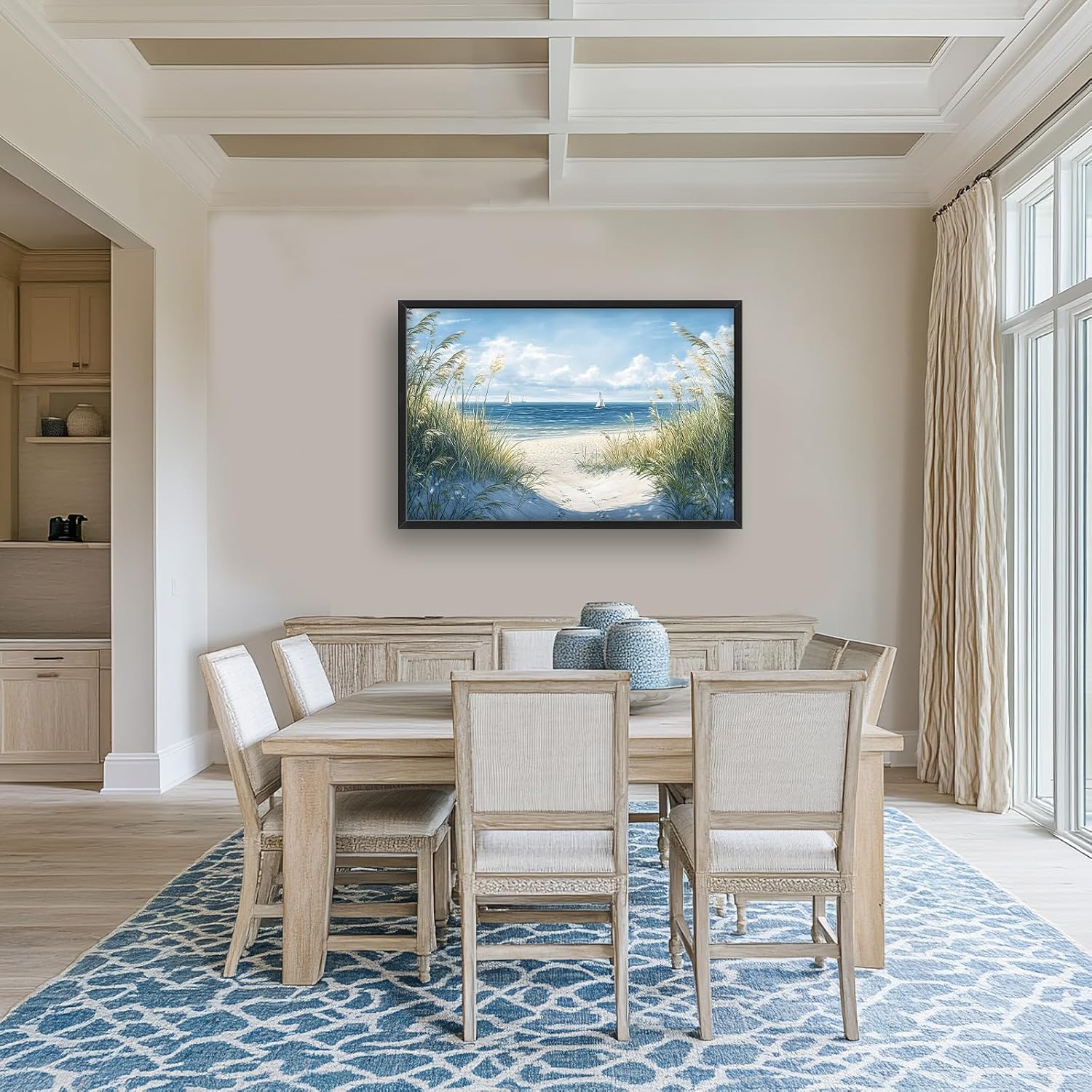 Framed Large Beach Wall Art for Living Room, Oversized Coastal Nautical Wall Decor Sailboat Canvas Seaside Pictures Modern Artwork Home Decoration for Living Room Bedroom Office 36"x24"