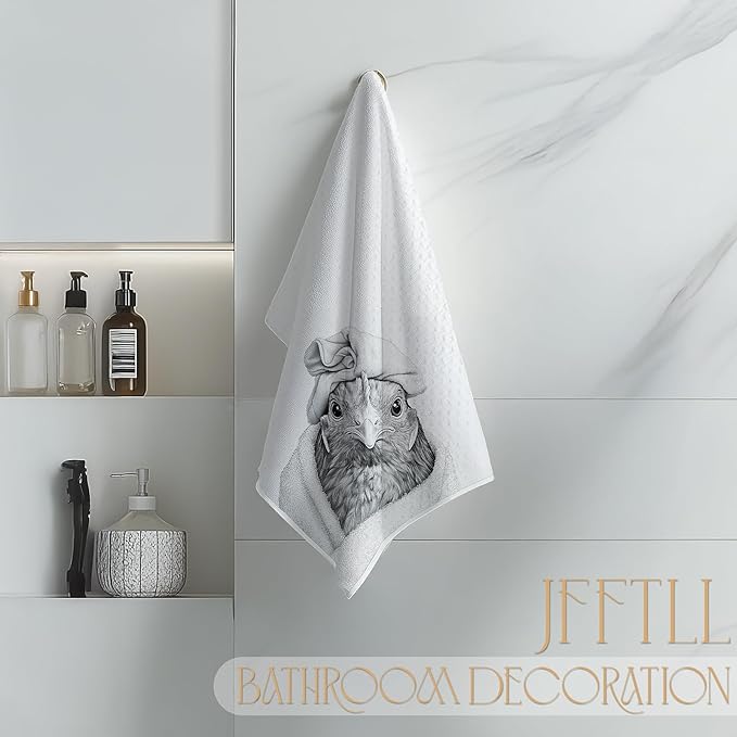 Funny Bathrobe Chicken Bathroom Hand Towels, Chicken Lady Mom Lover Gifts for Women, Farm Animal Rooster Hand Towels for for Bathroom Washroom Restroom Decor, 16x24 Inch