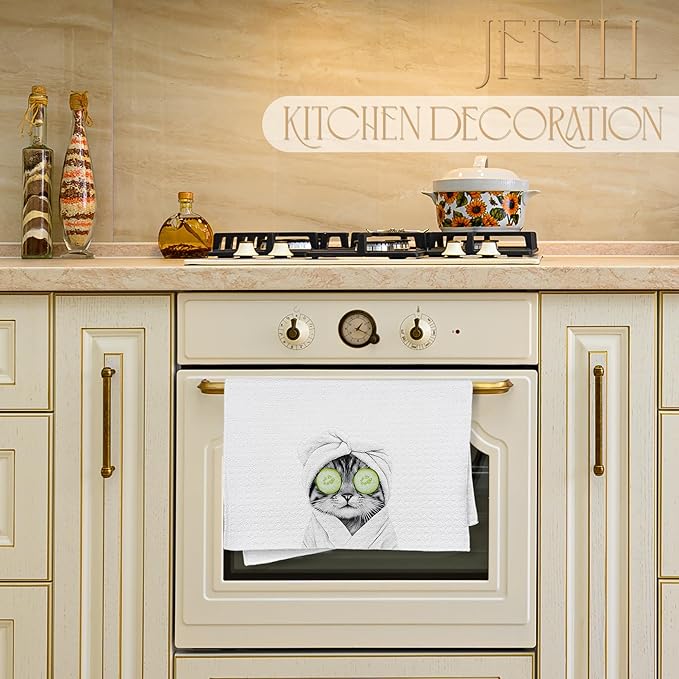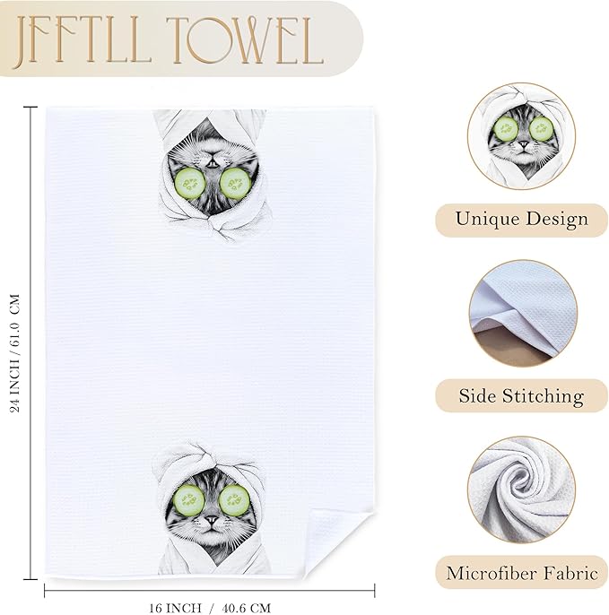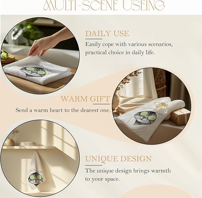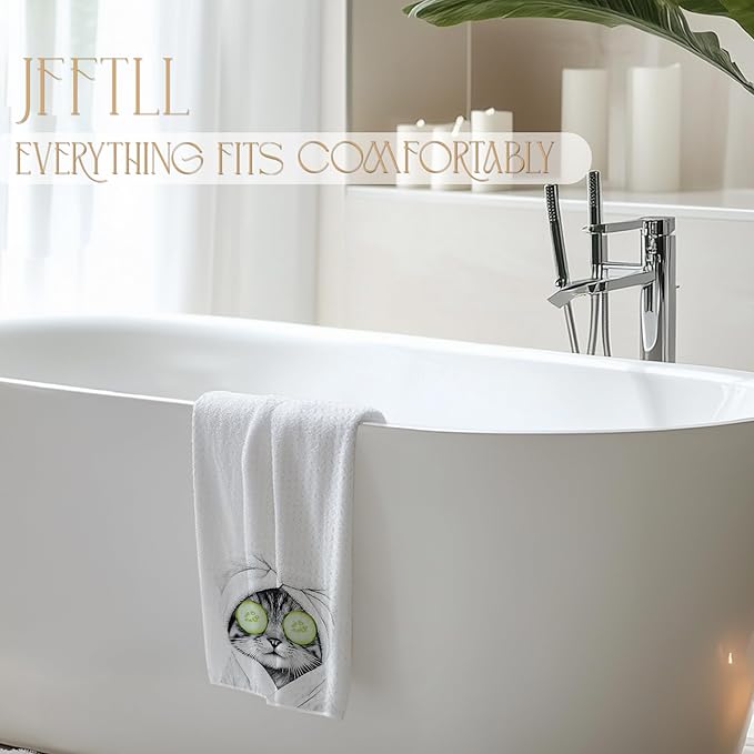 Funny Cucumber Cat Bathroom Hand Towels, Cat Mom Lady Lovers Gifts for Women, Cute Bathrobe Kitten Hand Towels for for Bathroom Washroom Restroom Decor, 16x24 Inch
