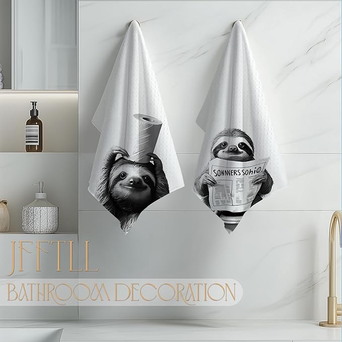 Funny Toilet Newspaper Sloth Bathroom Hand Towels, Gifts for Sloth Lovers Hand Towels for Bathroom Washroom Restroom Decor, 16x24 Inch Set of 2