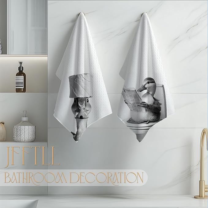 Funny Toilet Newspaper Duck Bathroom Hand Towels, Gifts for Duck Lovers Women Hand Towels for Bathroom Washroom Restroom Decor, 16x24 Inch Set of 2