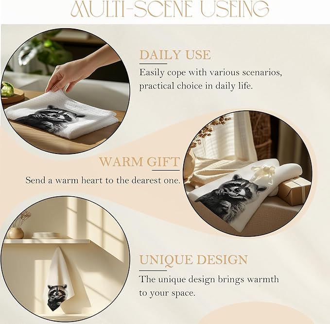Funny Toothbrush Raccoon Bathroom Hand Towels, Gifts for Raccoon Lovers Hand Towels for Bathroom Washroom Restroom Decor, 16x24 Inch