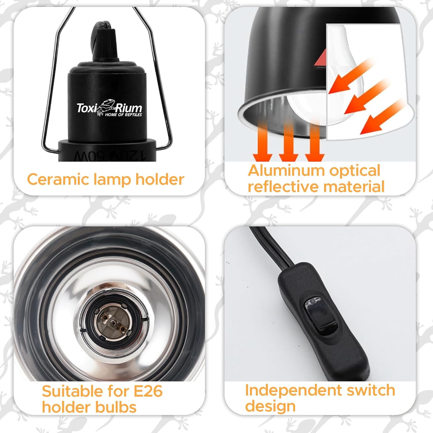 - Works with All Your Bulbs: Perfect for UVA, UVB, heat lamps, or energy-saving bulbs (up to 100W, max 5.9-inch length), giving you flexibility to meet your reptile’s specific needs.