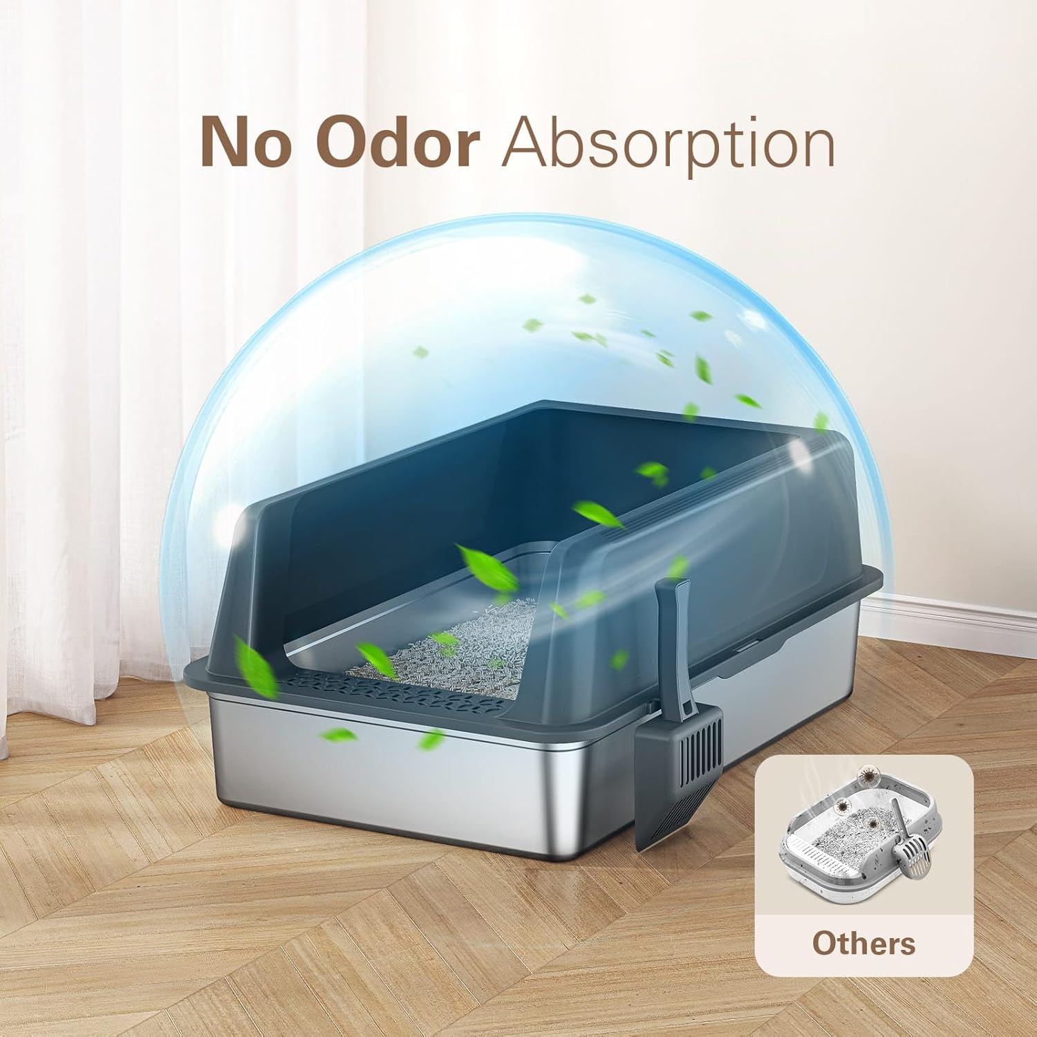 - 【Sturdy Stainless Steel Build】: Constructed from thick stainless steel for added durability, the XXL stainless steel litter box is designed to withstand daily use, resisting rust and scratches from cat paws. The non-porous nature feature of extra large stainless steel litter box also prevents odors from lingering, extending the lifespan and reducing the need for frequent replacement