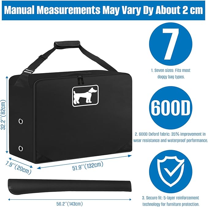 - 【Designed for Travelling Dog Playpen Storage】You will select the dog playpen storage bag is 51..5 "L x 7.9 "W x 28.3 ”H(Manual Measurements May Vary Dy About 2 Cm), helps you to organise and store dog fens, toys, picnic gear and other camping essentials efficiently, avoiding clutter.