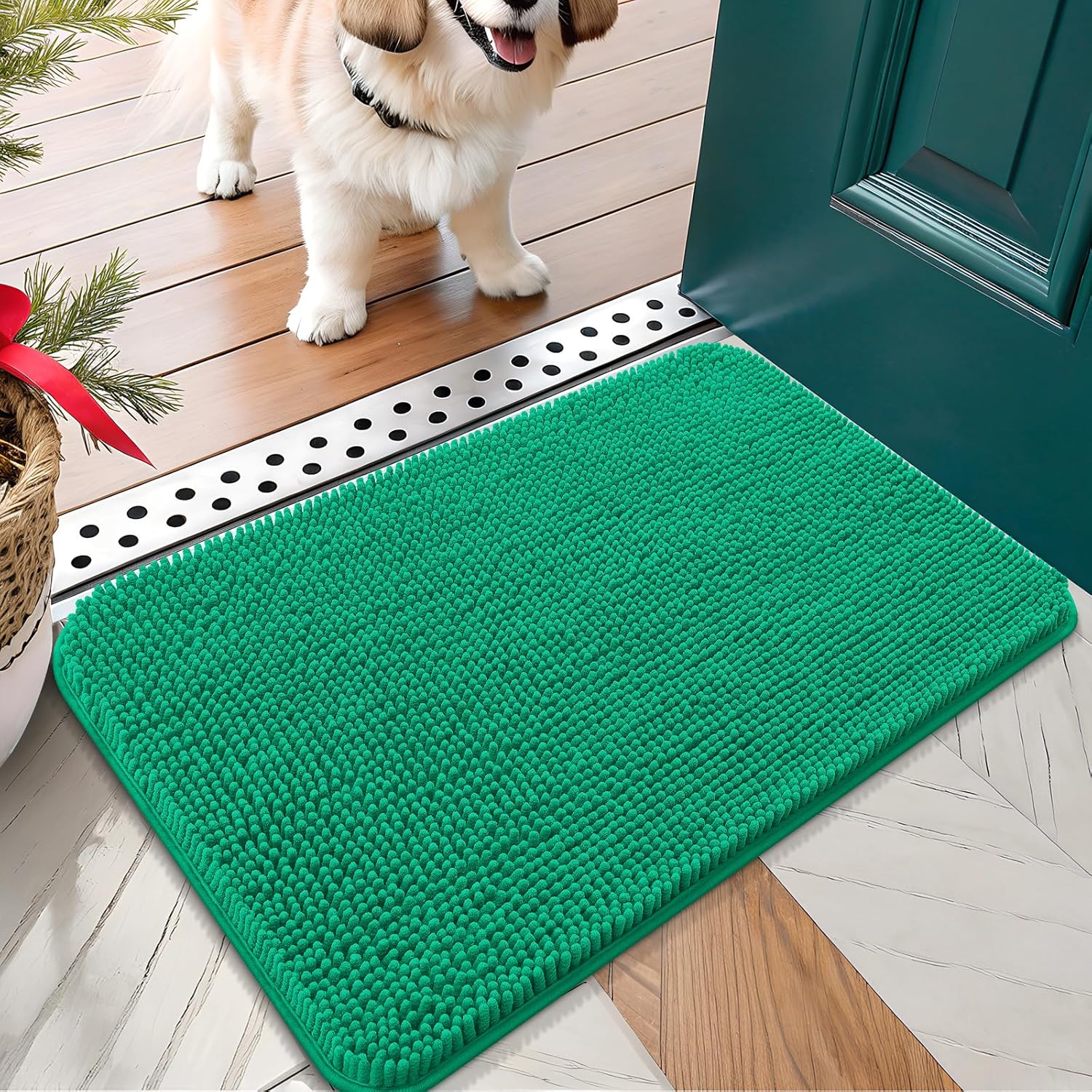 OLANLY Dog Door Mat for Muddy Paws 24x16, Absorbs Moisture and Dirt, Absorbent Non-Slip Washable Doormat, Quick Dry Chenille Mud Mat, Entry Indoor Entryway Carpet for Inside Floor, Emerald Green