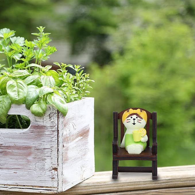 Cute Mini Cat Figurine with Rocking Chair - Resin Collectible Desk Decor, 1.5" Tiny Cat Statue for Home & Office - Gift for Cat Lovers