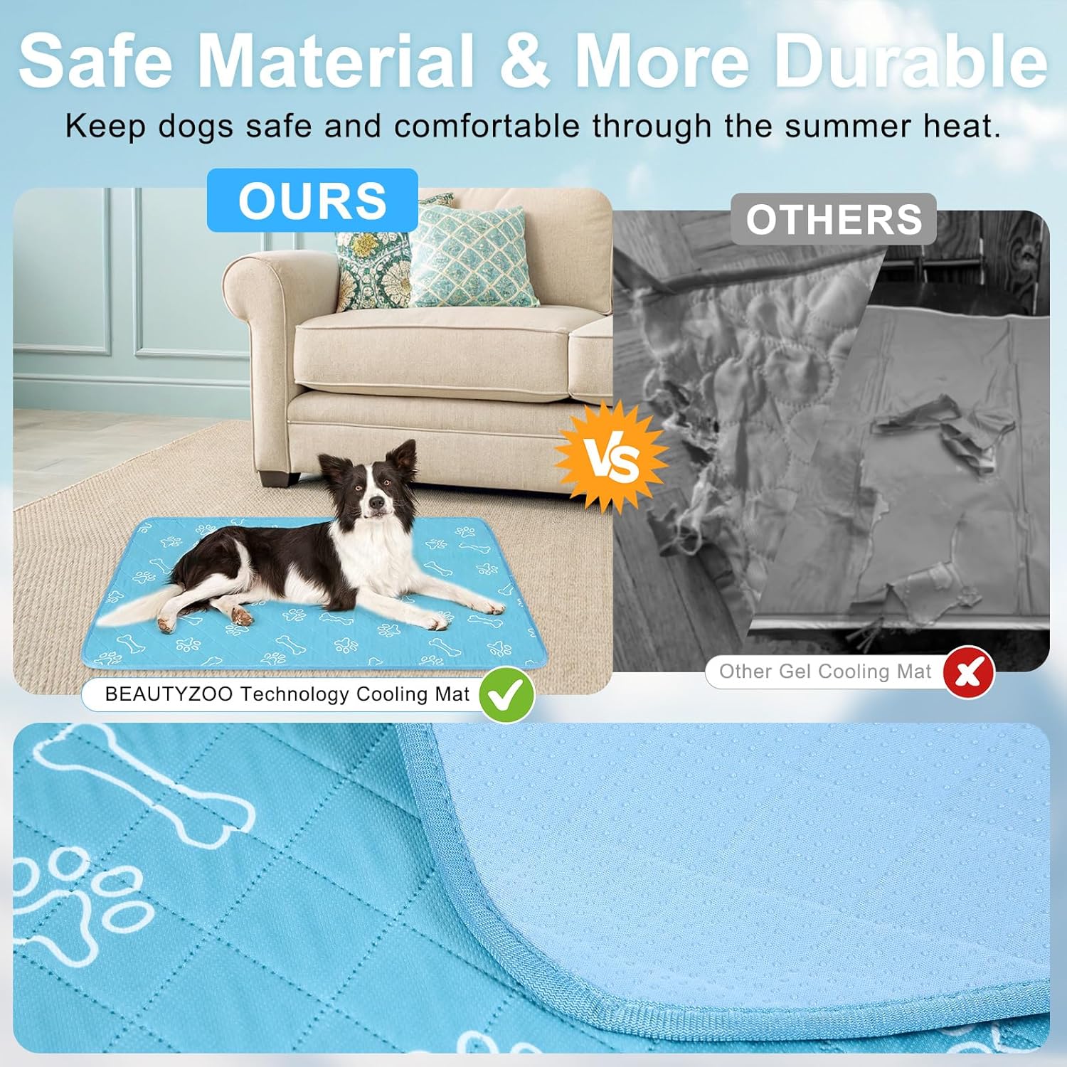 BEAUTYZOO Upgraded Dog Self Cooling Mat Ice Silk Chill Pads for Small Medium Large Dogs Q-MAX>0.43- Summer Reusable Pet Training Pad - Absorbent Non-Slip Cool Mat for Kennels, Crates, Beds, 18" x 24"