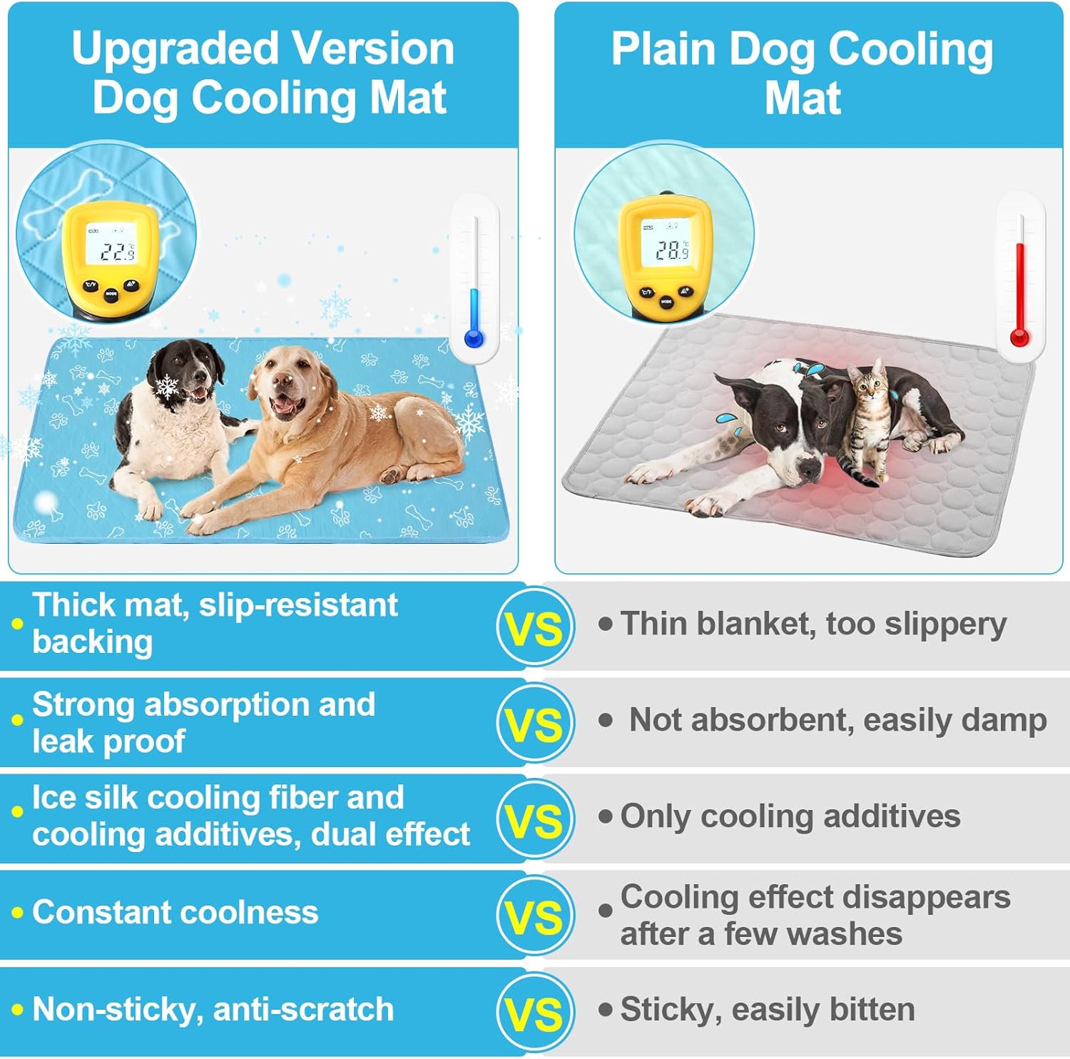 BEAUTYZOO Upgraded Dog Self Cooling Mat Ice Silk Chill Pads for Small Medium Large Dogs Q-MAX>0.43-Summer Reusable Pet Training Pad - Absorbent Non-Slip Cool Mat for Kennels,Crates,Beds, 22" x 28"
