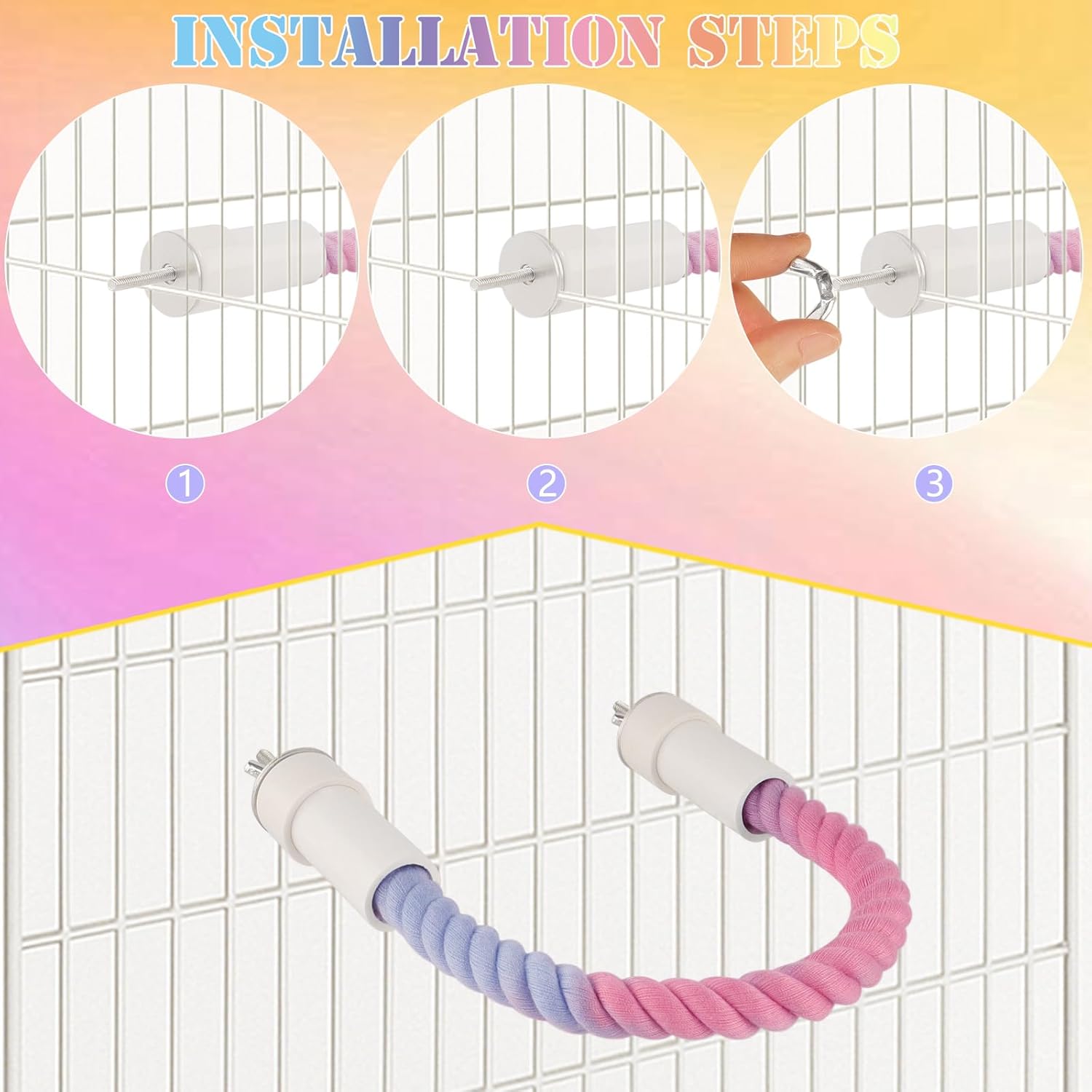 4Pcs Rope Perches for Bird Cages, Bendable Climbing Rope Cage Accessory Toy, Perfect for Parrots Cockatiels & Budgies, BirdToys, Swings & Ladders for Medium Birds