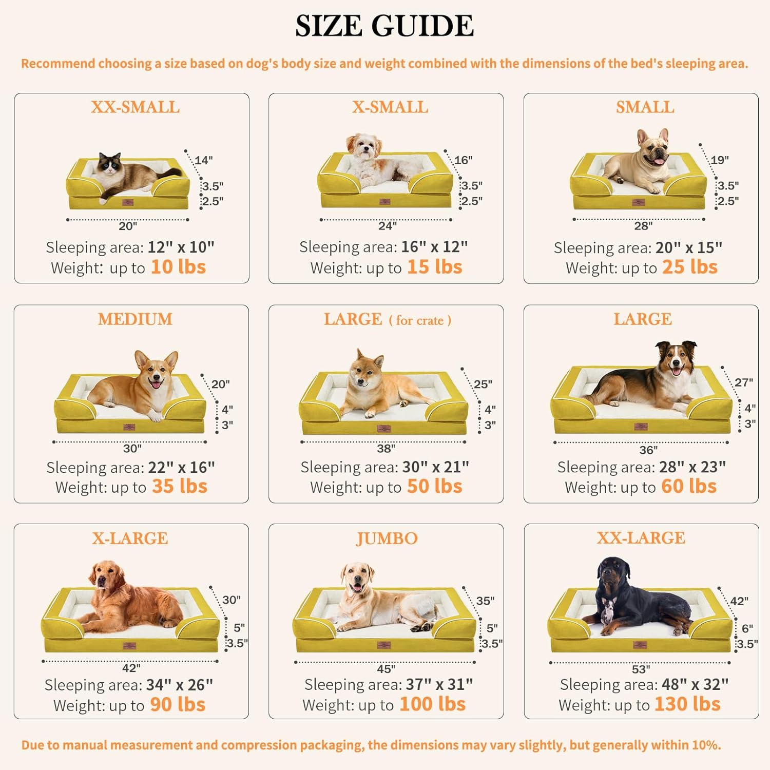 Comfort Expression Medium Dog Beds Waterproof Orthopedic Foam Dog Sofa Beds for Medium Large Dogs Comfy Pet Bed with Washable Removable Cover & Non-Slip Bottom(Medium,Spicy Mustard)