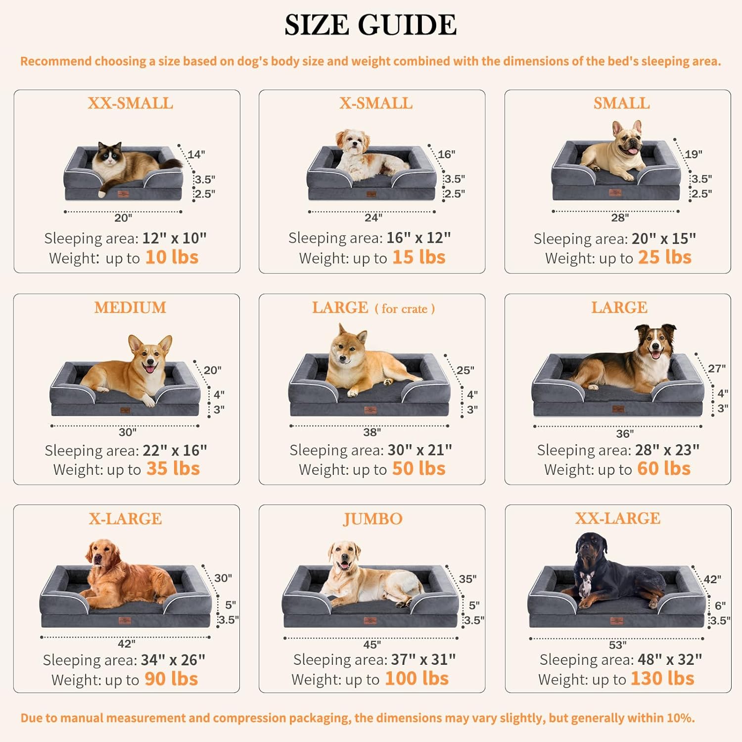Comfort Expression Medium Dog Beds Waterproof Orthopedic Foam Dog Sofa Beds for Medium Large Dogs Comfy Pet Bed with Washable Removable Cover & Non-Slip Bottom(Medium,Dark Grey)