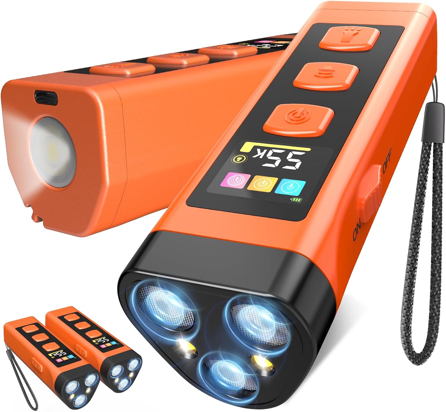 - 📏 65ft Range with Flashlight & SOS Mode:With up to 65 feet of effective range, this bark deterrent device gives you full control at a distance. The built-in flashlight is ideal for nighttime walks, and the SOS strobe function adds visibility and safety in emergencies.