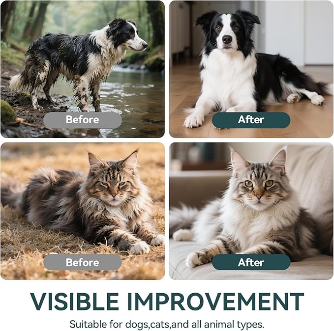 - HYPOALLERGENIC: PH-balanced formula with natural extracts to nourish skin and fur. Free of harsh chemicals—safe if licked. Trusted for puppies, kitten, seniors, and pets with allergies or delicate skin.