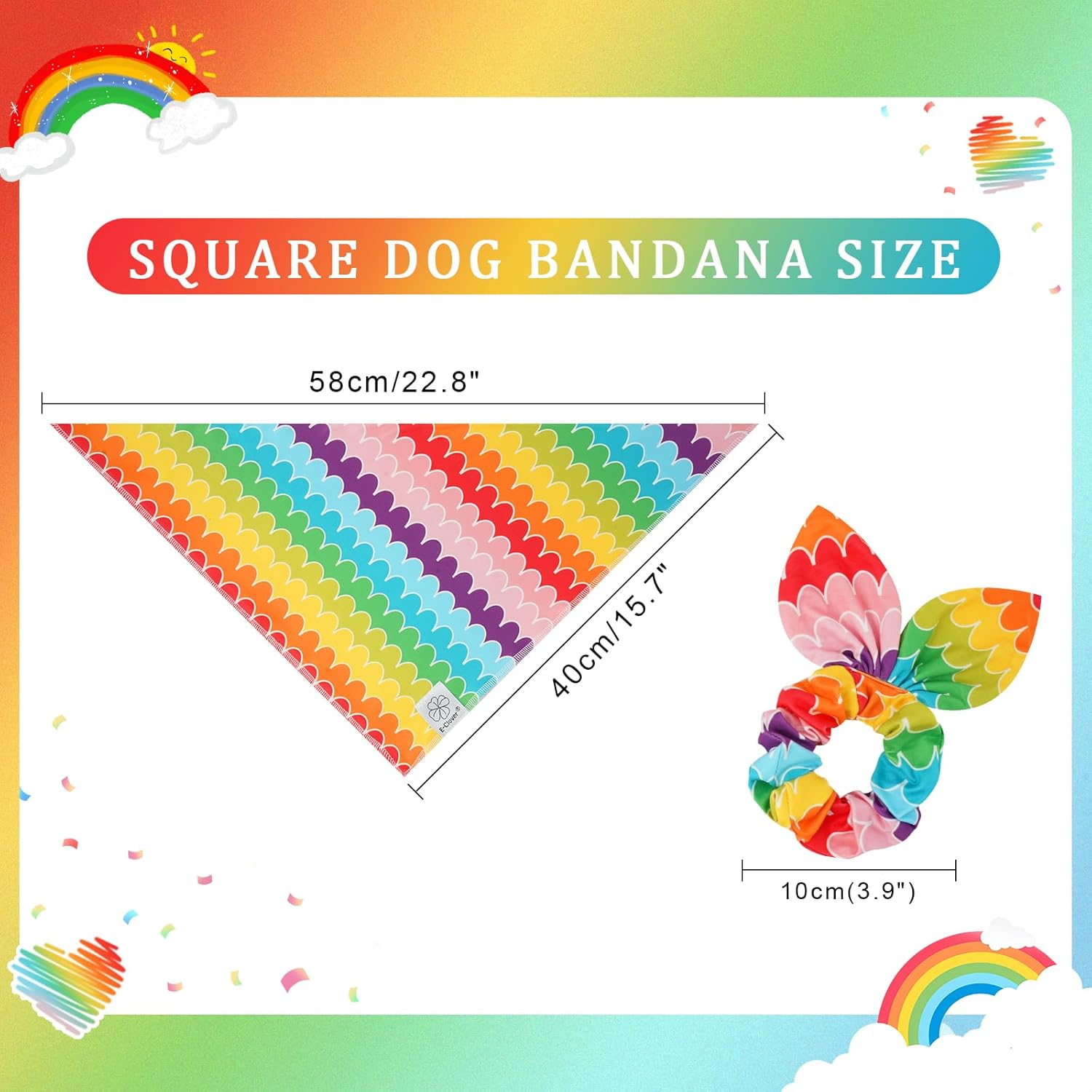 - Pride Dog Bandanas Size: 20.8x13x3inchs (53cm *33cm *33cm).The adjustable cute dog bandanas fit pet neck size up to 14inchs (36cm).You can roll the dog bibs a couple of times to fit your dog if it’s too large. Please measure your dog’s neck before buying.Rainbow scrunchies is one size fits all.