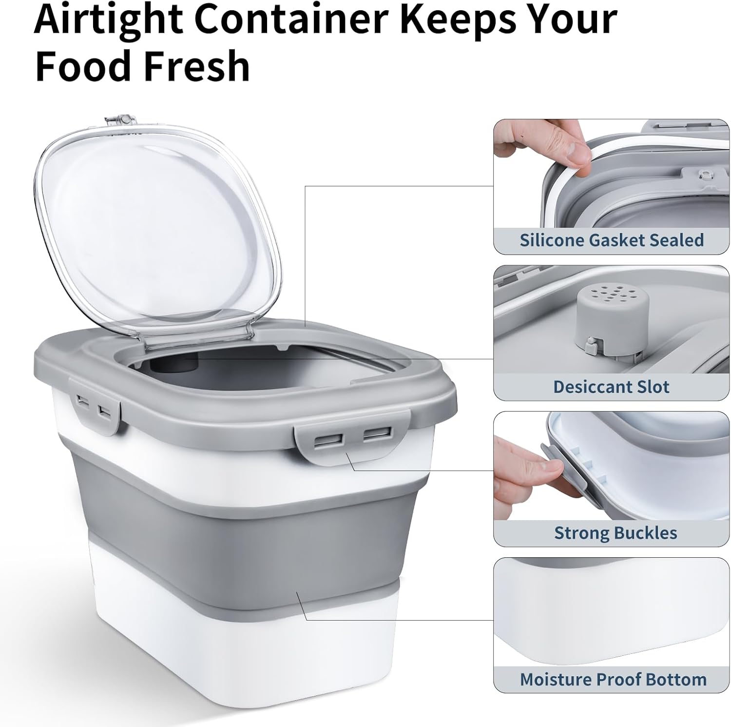 - 🔒【Airtight Lid & Clear Hatch】4 side locking lids and double airtight silicone seals keep your rice or pet food stays fresh for longer, protecting it from moisture and pests. Say goodbye to stale and soggy food! The magnetic clear hatch on the top allows for easy viewing and scooping of food.
