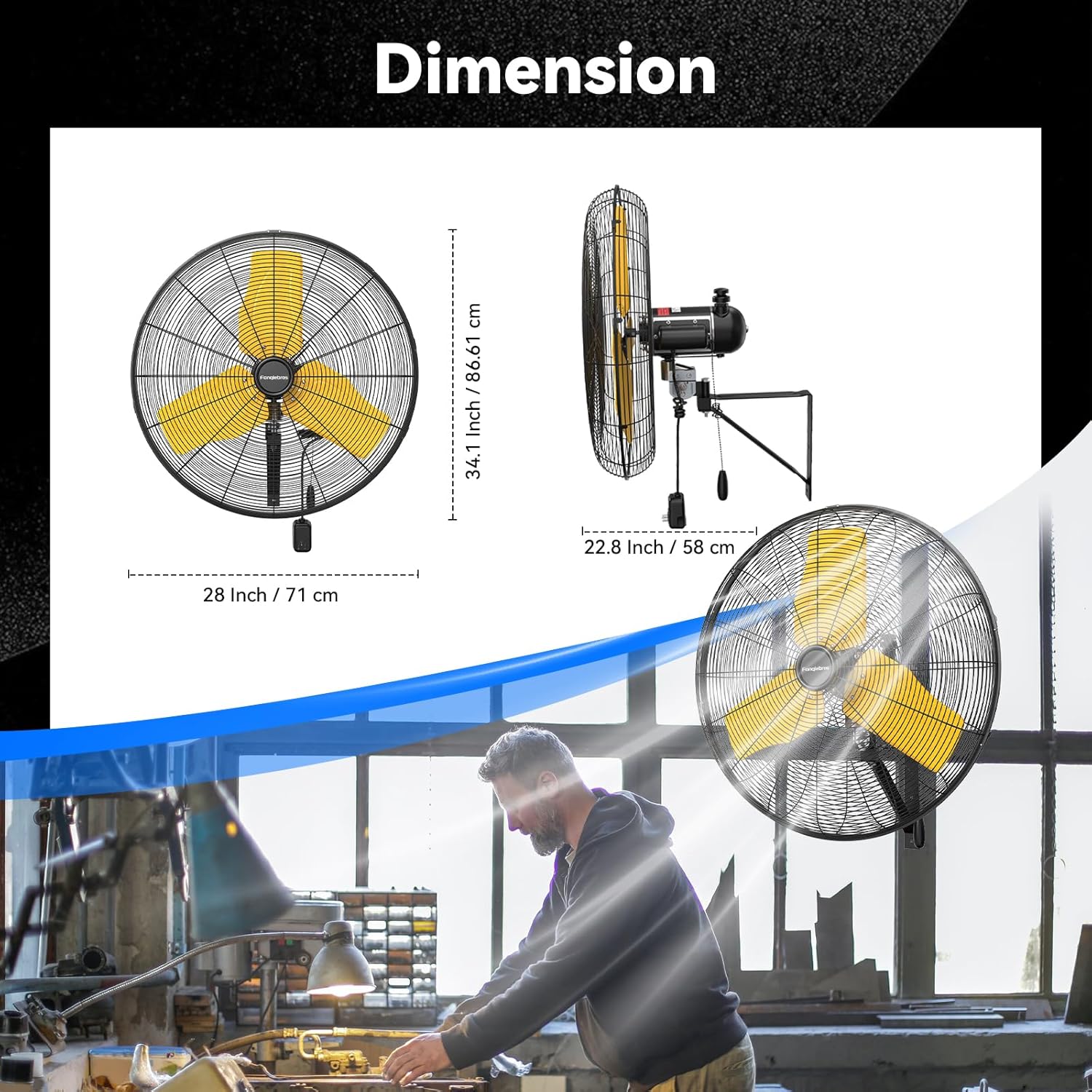 - 𝐋𝐨𝐰-𝐍𝐨𝐢𝐬𝐞 𝐃𝐞𝐬𝐢𝐠𝐧 - The heavy-duty wall fan operates at a high speed of 9500 CFM with a noise level of only 65dB, which is lower than the industry standard, creating a quieter gathering or working environment