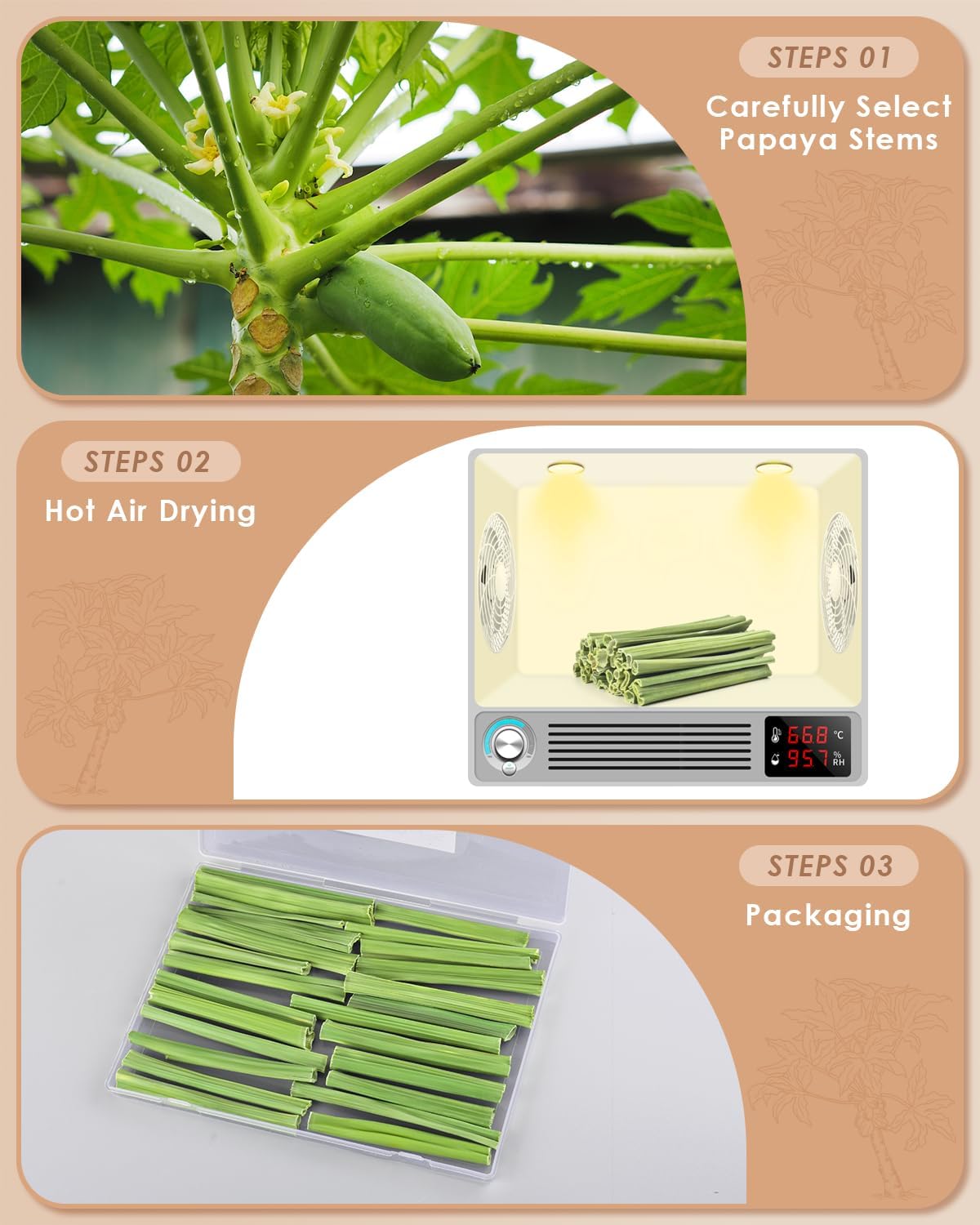 - Natural Organic Materials: 100% natural papaya stem, rich in dietary fiber, xylose, vitamin A&C, low in calories, help digestion, no additives, harmless to your pet. Please be careful not to overfeed your pets, preferably 1 or 2 a day, or every 2 to 3 days