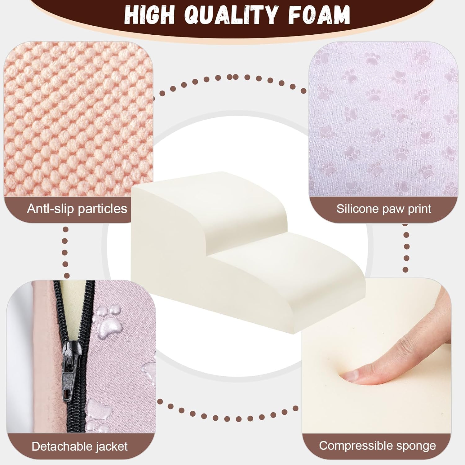Dog Stairs for Small Dogs - High Density Foam Pet Steps, Extra Wide Dog Ramp with Non-Slip Bottom for High Beds, Couch and Sofa, Best for Dogs Injured, Older Doggy Cats, 2 Steps, Pink
