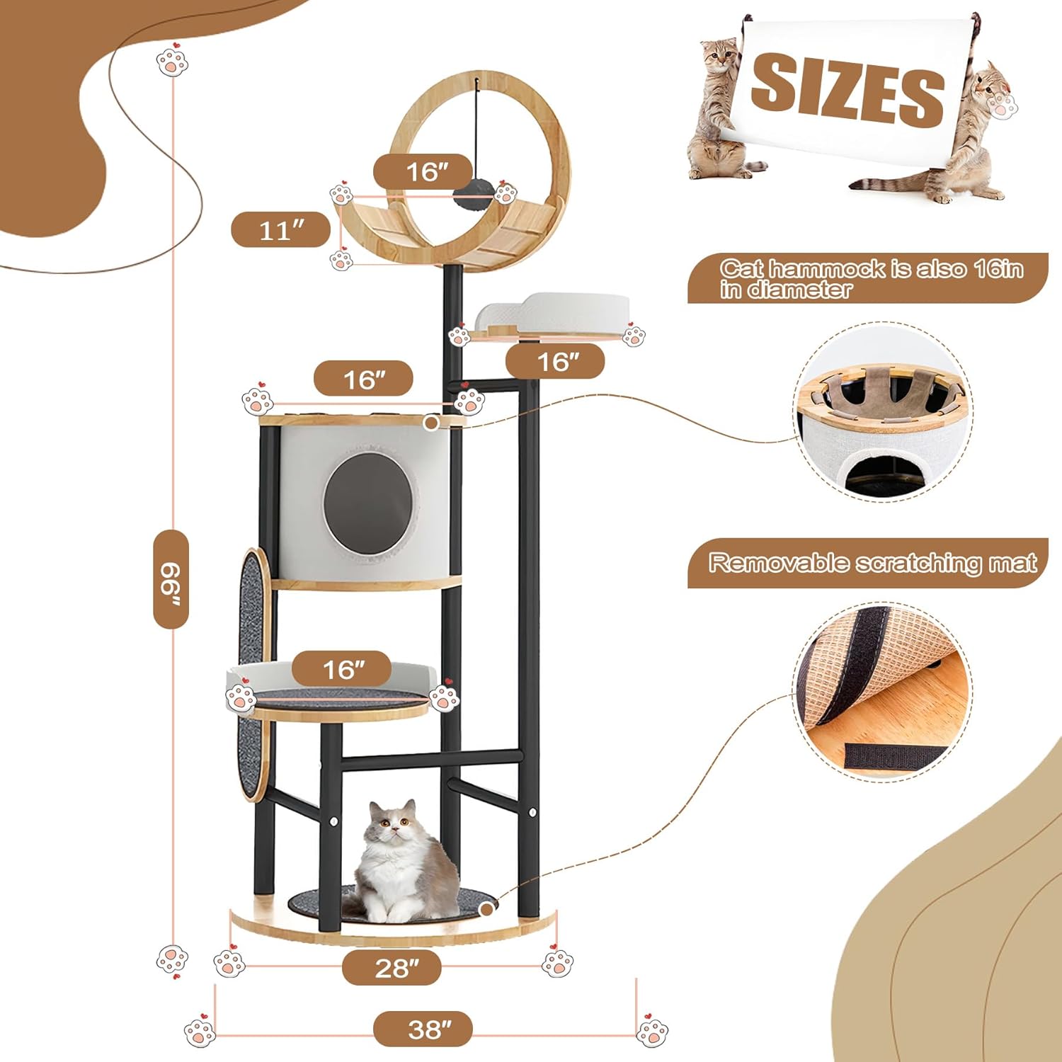 - 【ALL-IN-ONE CAT PLAYGROUND】Featuring a multi-level design for scampering up and down, the cat tower is equipped with perches, cat house, hammock, and scratching post, which increases the activity space for cats, promotes their exercise and vitality, and satisfies their climbing instinct and curiosity.