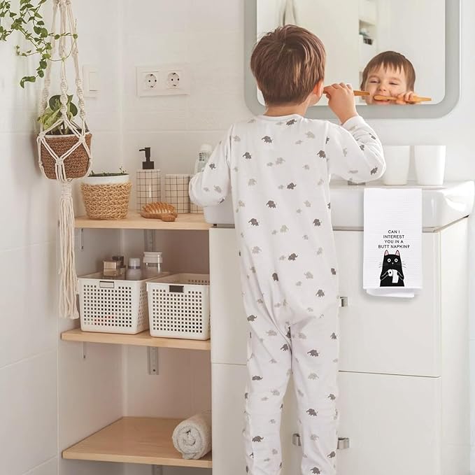 Funny Black Cat Bathroom Hand Towels, Can I Insert You in a Butt Napkin Hand Towels for Bathroom Decor, 16x24 Inch