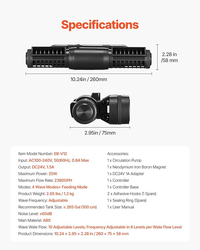 - Whisper-Quiet Operation: Equipped with a pure copper motor and wear-resistant ceramic shaft, our wave maker for aquarium operates at a quiet 60 dB, ensuring a peaceful and noise-free environment for your aquarium