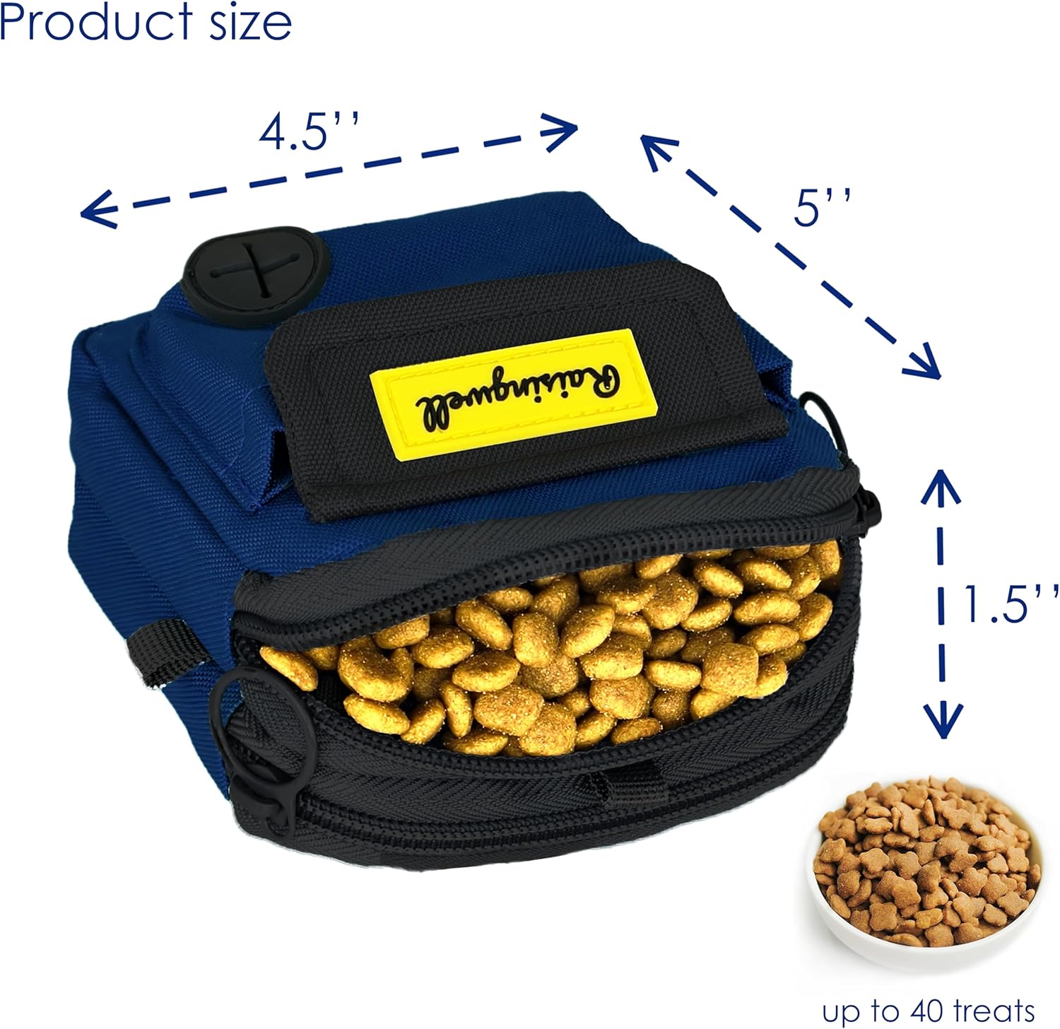 Dog Treat Pouch for Pet Walking and Training with Clicker, Poop Bags and Three Bags Design Small Fanny Zipper Pack Holder for Puppy Snack Dispenser Kit for Leash and Outdoor Use (Blue)