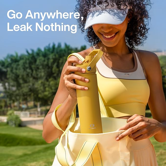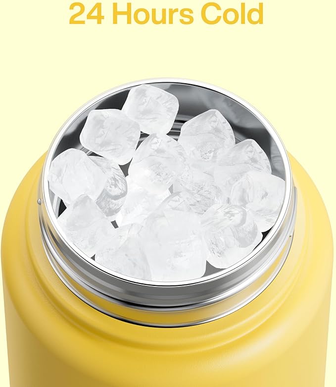 Insulated Water Bottle with Straw Stainless Steel Water Bottle, Leak-Proof, BPA-Free, Double Wall Vacuum Keeps Cold for 24 Hours for Sports, Travel, School (32 oz, Elfin Yellow)