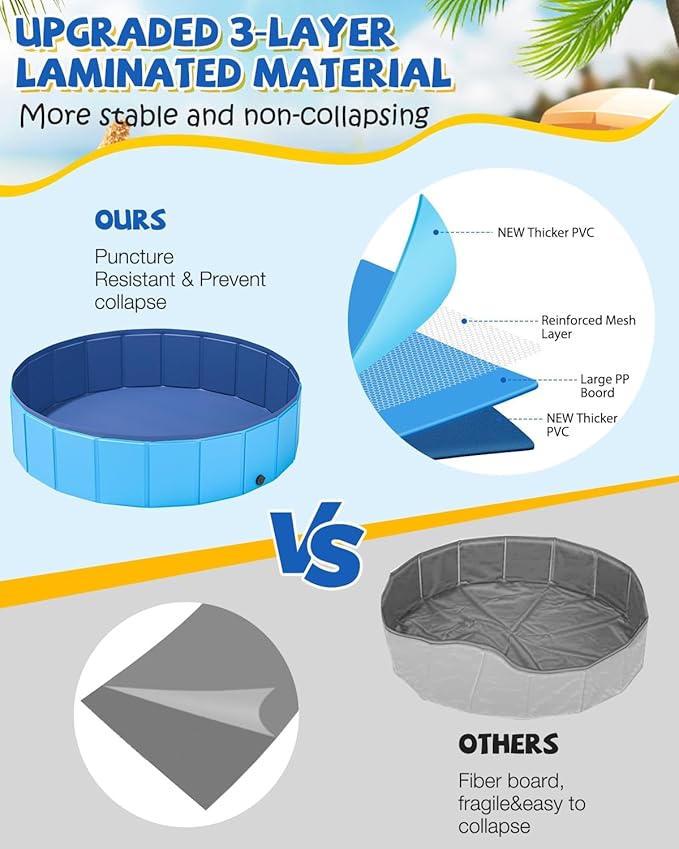 Foldable Dog Pool, YSJILIDE Portable PVC Pet Swimming Pool, Collapsible Plastic Bath for for Large Medium Small Dogs & Kids (XXXL-79"x 16" Blue)