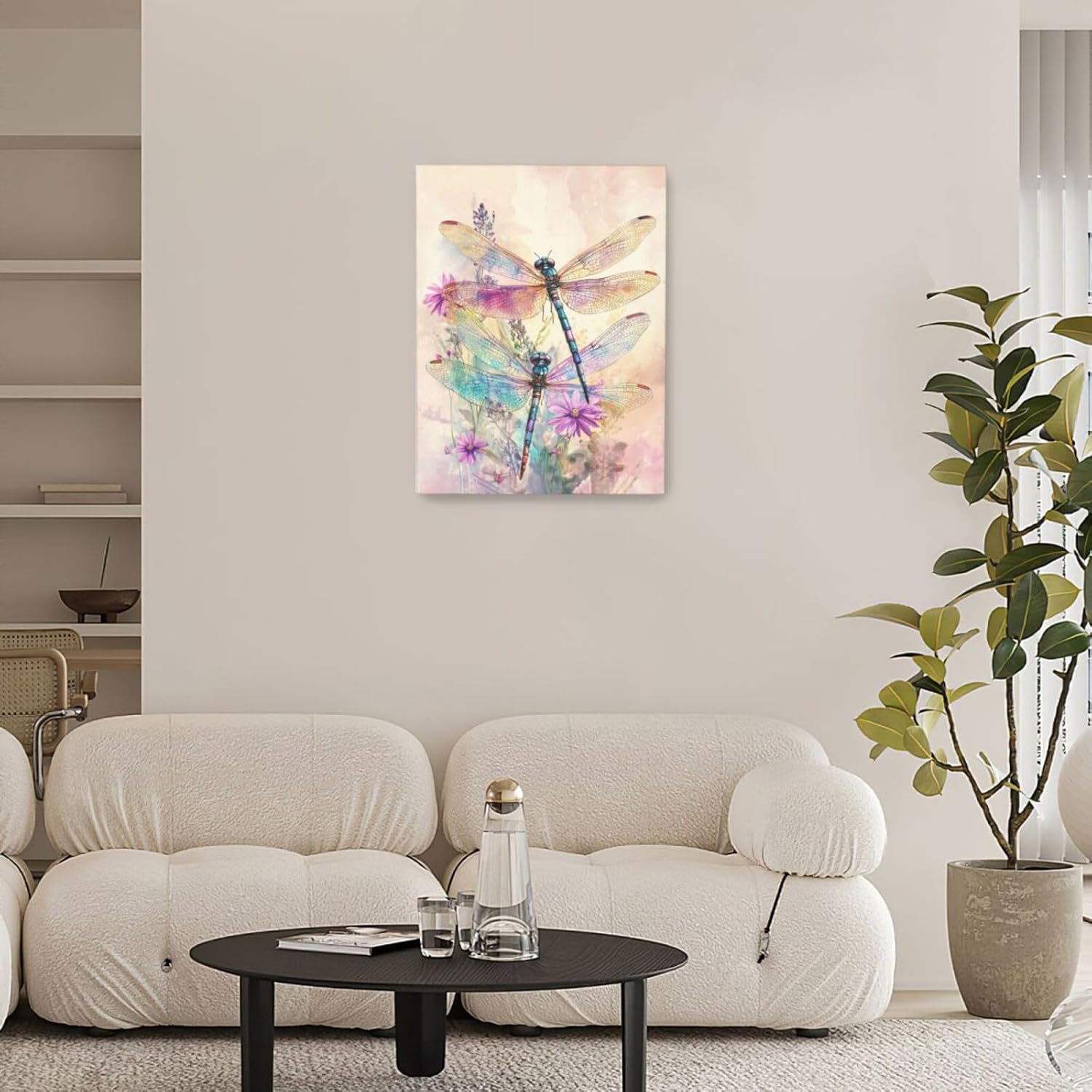 Dragonfly Bathroom Pictures Wall Art, Floral Bathroom Wall Decor, Framed Painting Canvas Artwork for Bedroom Living Room Decorations 16"L x 12"W