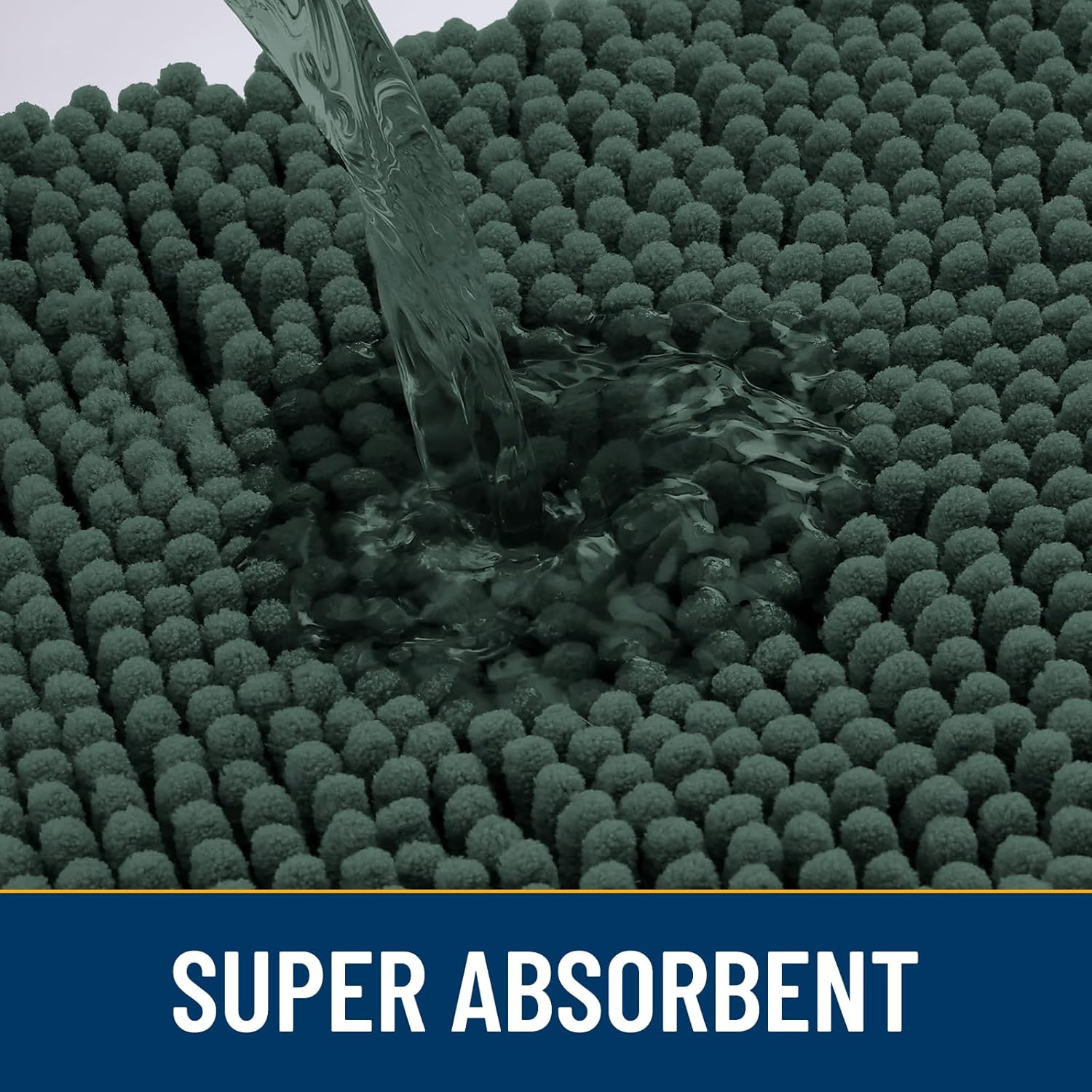 Smiry Dog Door Mat for Muddy Paws 48x30, Absorbs Moisture and Dirt Doormat, Non-Slip Washable Quick Dry Chenille Front Door Mat Indoor Entrance, Entryway Carpet for Inside Floor, Green