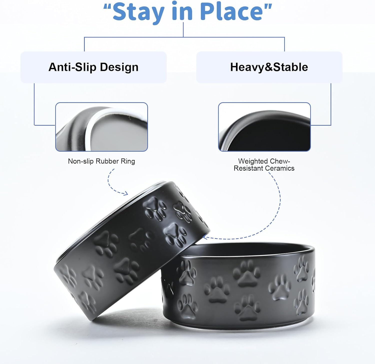 - Heavyweight, Chew‑Resistant Ceramic – Thick and Durable ceramic delivers the heft needed to prevent dragging, tipping, and the clanging noise common like other stainless bowls, while the smooth, lead‑free glaze discourages chewing and stands up to daily use