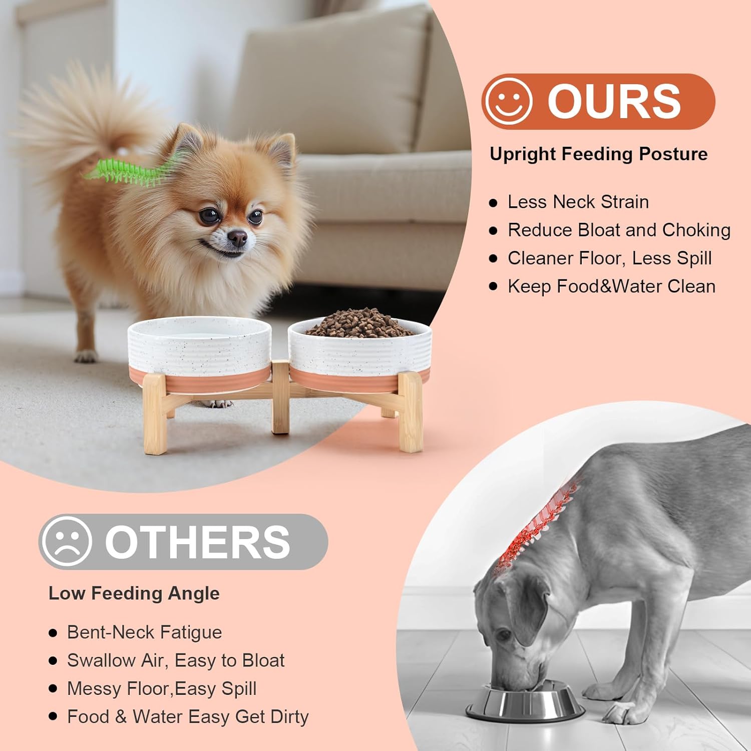 - Modern Design Meets Everyday Convenience – A minimalist fusion of high quality ceramic and natural bamboo creates the elevated dog bowls that blends effortlessly with any home decor. multiple colors and patterns avaliable to fit the different home decor,The bowl tolerates microwave reheats for warm meals and slides straight into the dishwasher for easy clean, while the smooth bamboo stand wipes clean in seconds—ideal for any busy pet parents