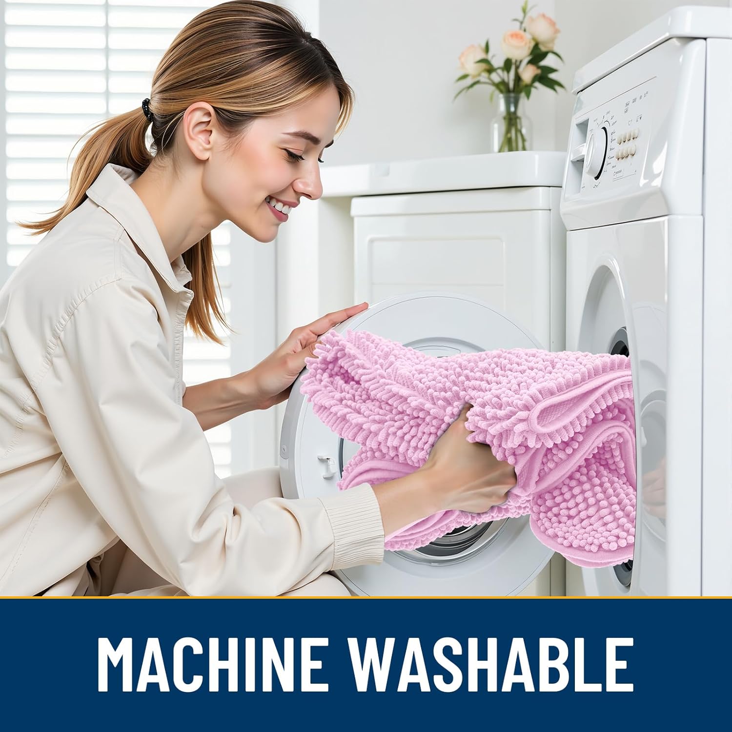 Smiry Dog Door Mat for Muddy Paws 24x16, Absorbs Moisture and Dirt Doormat, Non-Slip Washable Quick Dry Chenille Front Door Mat Indoor Entrance, Entryway Carpet for Inside Floor, Pink