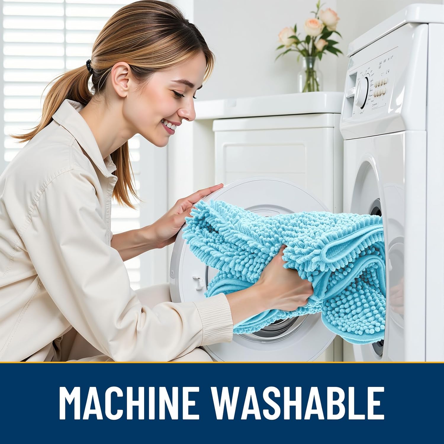 Smiry Dog Door Mat for Muddy Paws 36x24, Absorbs Moisture and Dirt Doormat, Non-Slip Washable Quick Dry Chenille Front Door Mat Indoor Entrance, Entryway Carpet for Inside Floor, Sky Blue