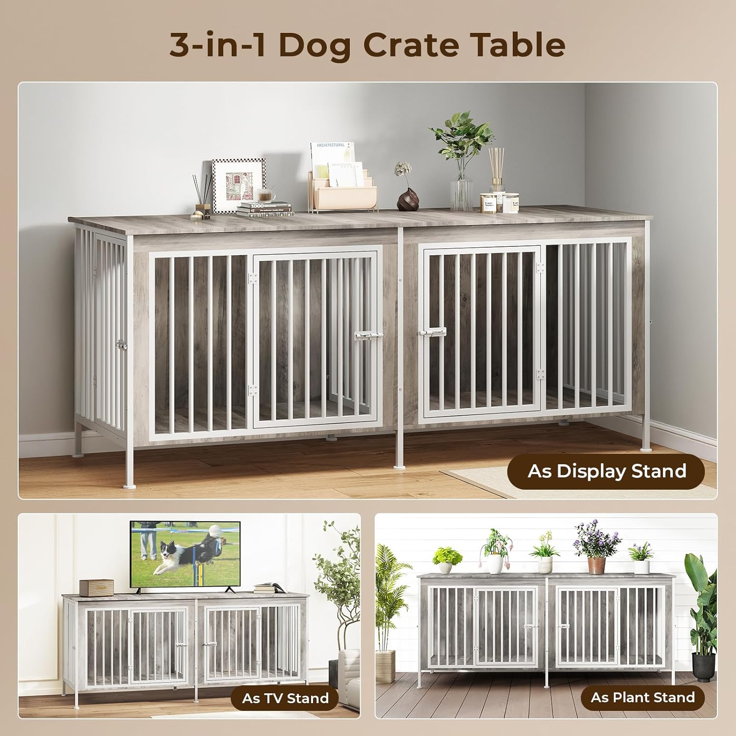 - Multifunctional Dog Crate Table: This dog kennel indoor combines function and style for a chic piece of furniture. Its rustic wood grain and clean lines fit perfectly in a living room, bedroom or entryway and can be used as a TV stand, side table or decorative ornament while saving space