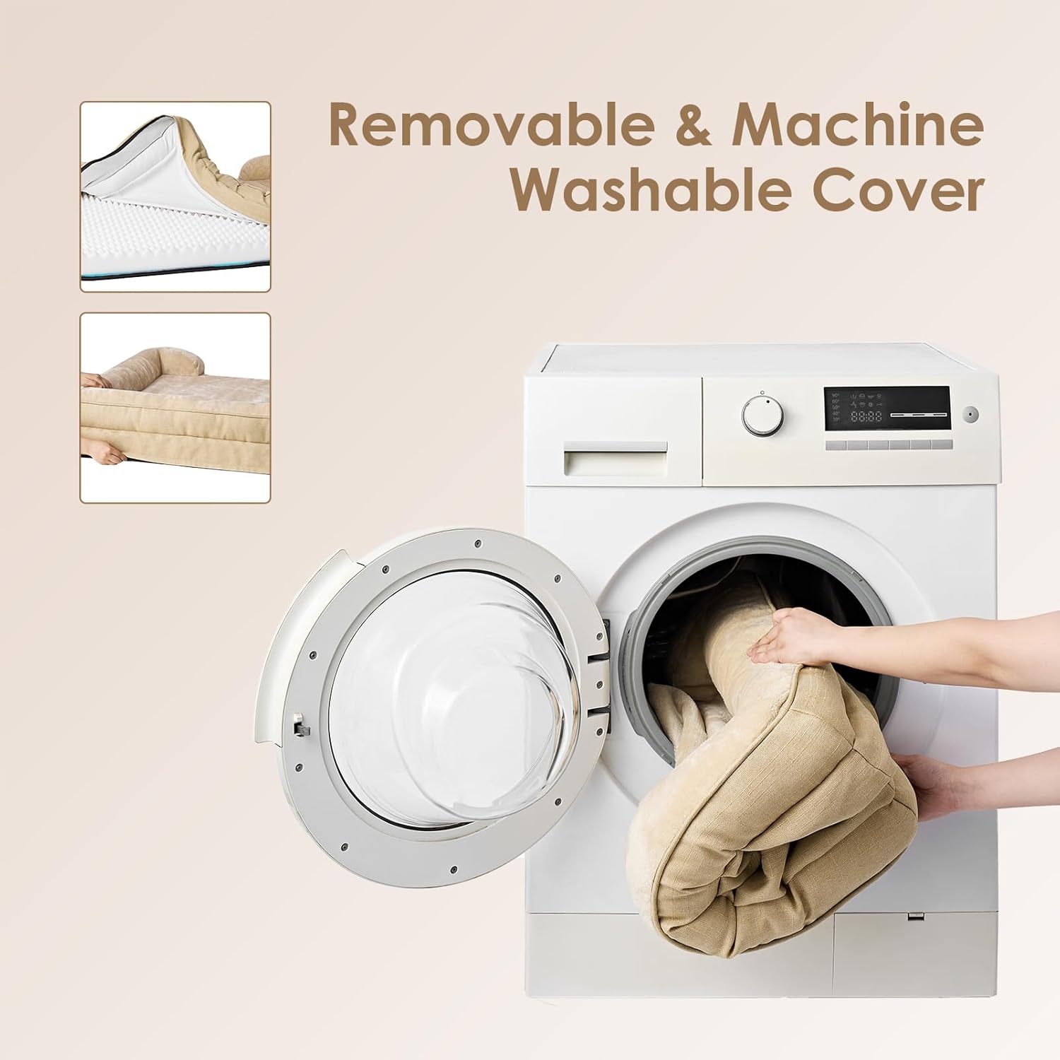 - CARE INSTRUCTIONS: Our dog bed features a removable and washable cover with a zipper closure, making it easy to clean. Remove the foam insert, and the cover can be washed in a machine. Please note that the foam insert is not washable. Allow the bed to expand for 24-49 hours after unpacking.