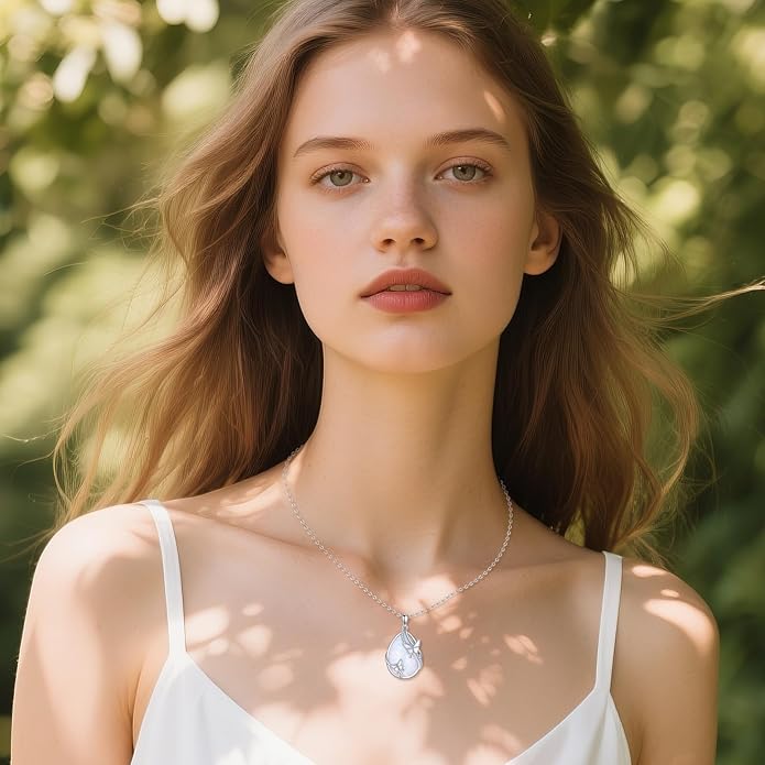 KQF Dragonfly/Butterlfy/Cat/Jellyfish/Bunny/Axolotl/Bee/Mermaid/Hummingbird/Elephant Necklace for Women Sterling Silver Moonstone Pendant Necklace Dragonfly Jewelry Gifts for Women