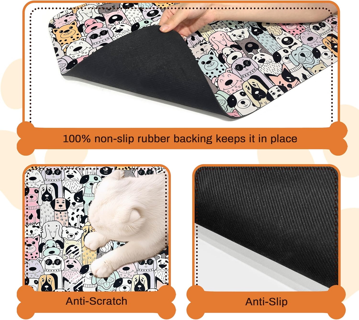 - Super Safe Non-Slip Rubber Mat for Dog Bowls - Our dog feeding mat features a special non-slip rubber backing that keeps the dog bowl mat firmly in place, even with energetic pets! The pet food mat won't bunch or slide during use. Perfect as pet mats for food and water in kitchens or feeding areas.