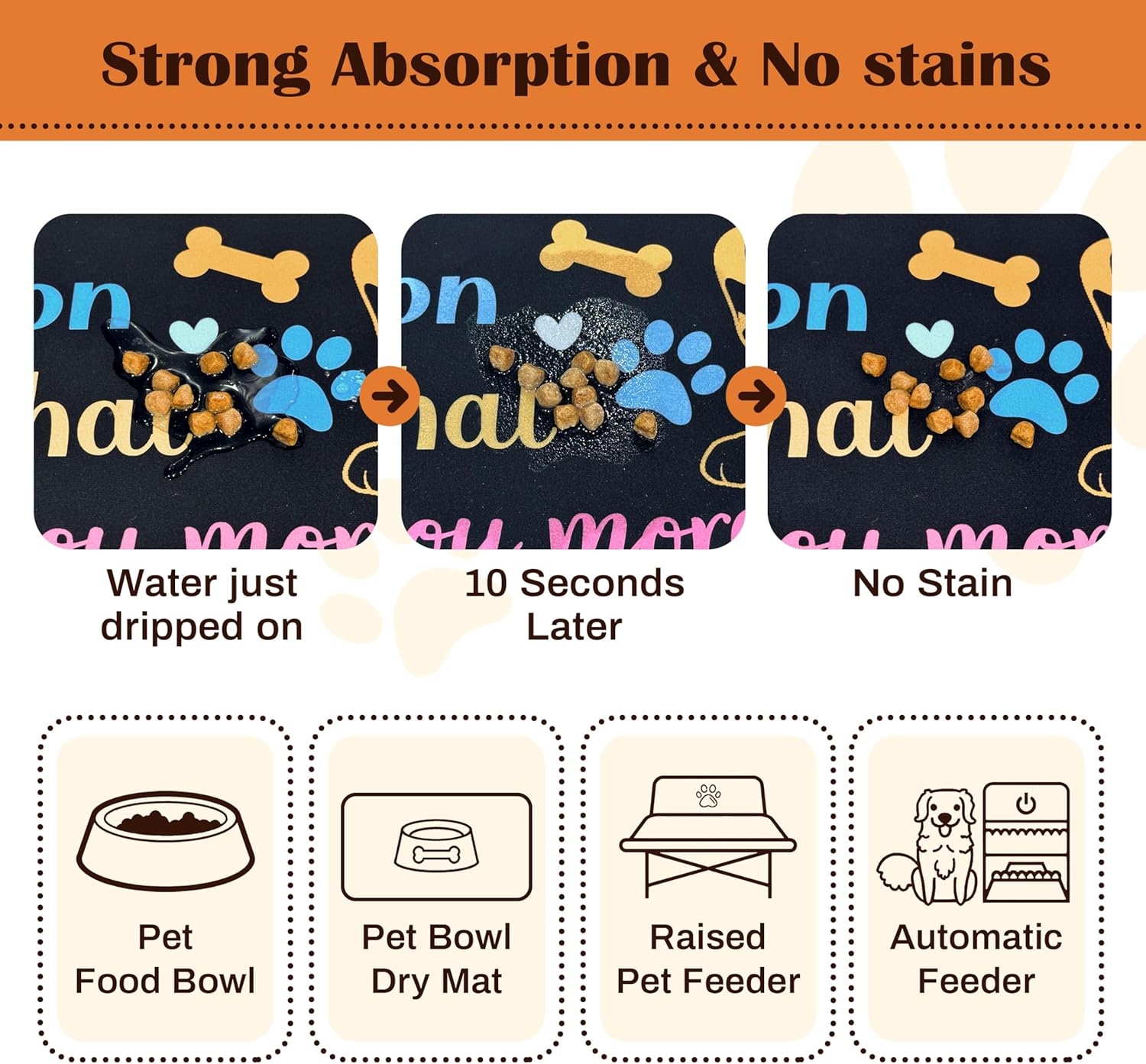 Pet Feeding Mat for Floors Waterproof Dog Mat for Food and Water Absorbent Quick Dry Non Slip mat for Cat Bowls