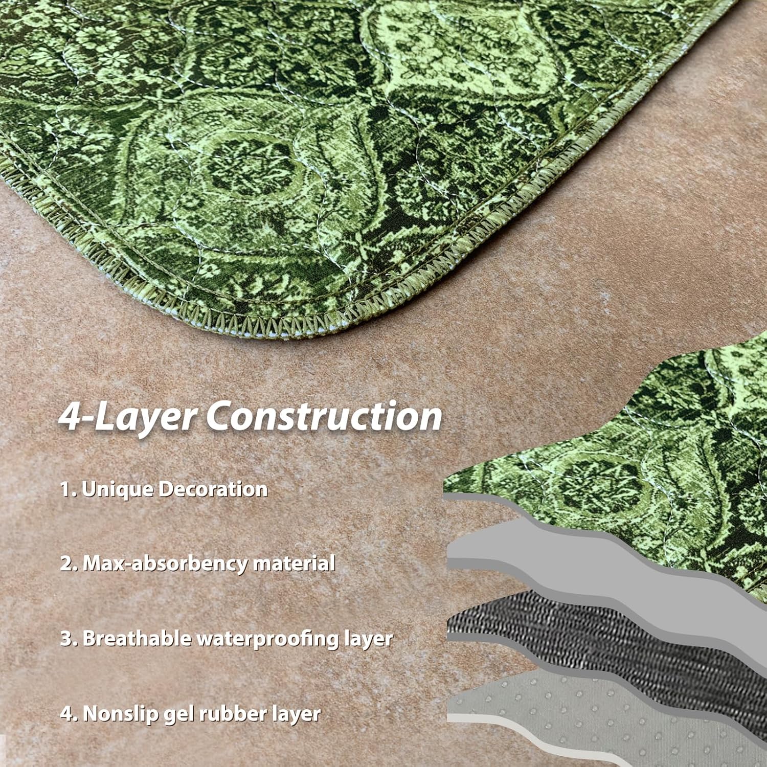 nunubaby Washable Pee Pads for Dogs, Stylish, Non-Slip and Leak-Proof Pee Pads. Reusable Potty Pads for Dogs for Crates and Floors.(Green/Multi, 54" x54")
