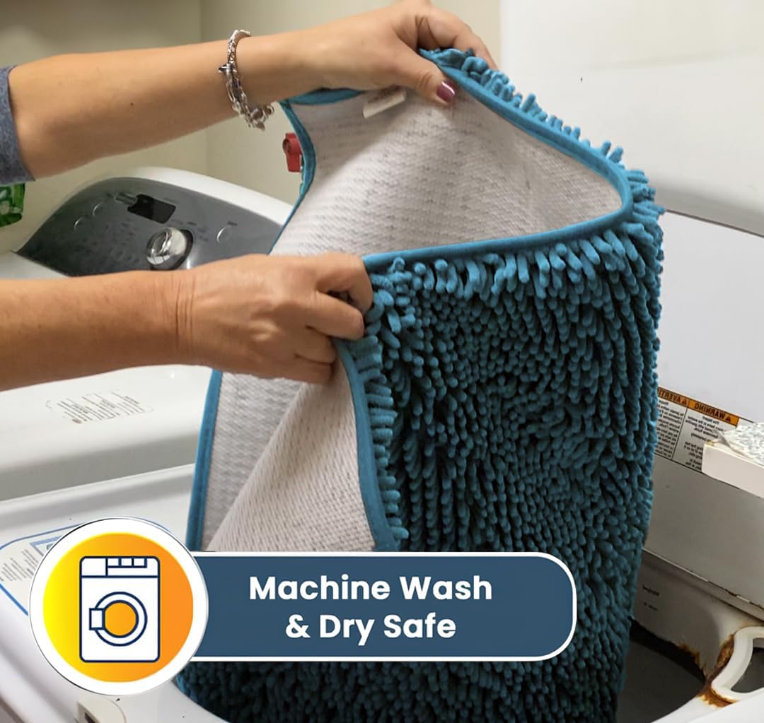 - [ ULTRA MOISTURE ABSORBENT ] Designed with a thick layer of plush 1-inch chenille that soaks up to 5X its weight for maximum water absorption ideal for trapping liquid from shower floors and wet spills from pets.