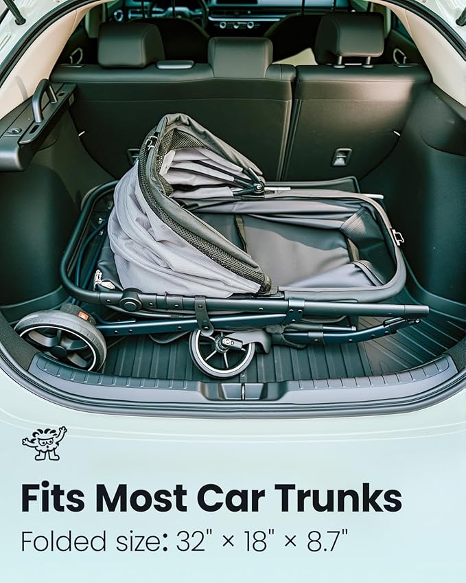 - Easy to Assemble and Fold: This pet stroller is easy to install and can be completed in a few minutes by following the installation manual. This pet stroller for cats features a quick-folding design for easy storage. You can fold the stroller and put it in the trunk of your car.