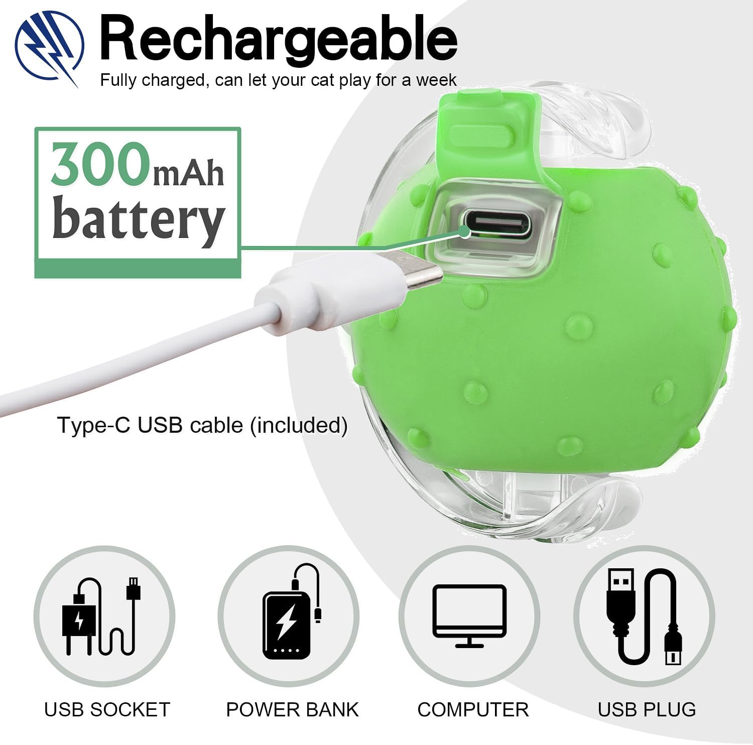 - Fast Charging & Eco-Friendly – USB Type-C rechargeable (cable included); 300mAh rechargeable battery and easily fully charged in 30 mins, no disposable batteries needed.