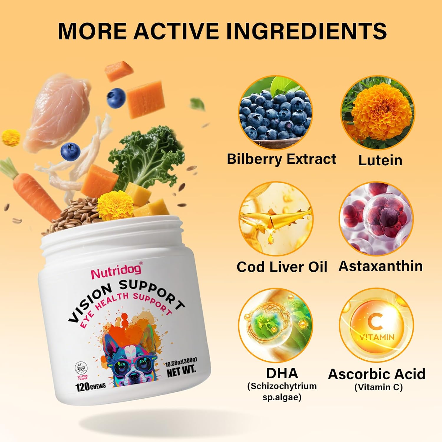 - ADVANCED EYE HEALTH FORMULA WITH COD LIVER OIL & ANTIOXIDANTS - Nutridog Eye Supplements deliver 12 essential nutrients including DHA from algae, Bilberry Extract, and Lutein to combat oxidative stress and reduce inflammation. Scientifically formulated to support retinal function and shield against UV damage, these soft chews target cataracts, dry eyes, and conjunctivitis while promoting long-term ocular resilience. Ideal for aging dogs or breeds prone to vision decline
